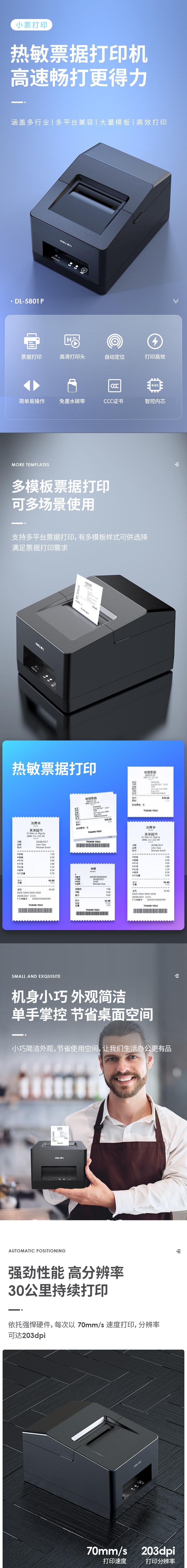 Deli Dl-5801P Impresora Térmica para Llevar Impresora Térmica de Recibos Toma Pedidos Automáticamente Meituan Ele.Me