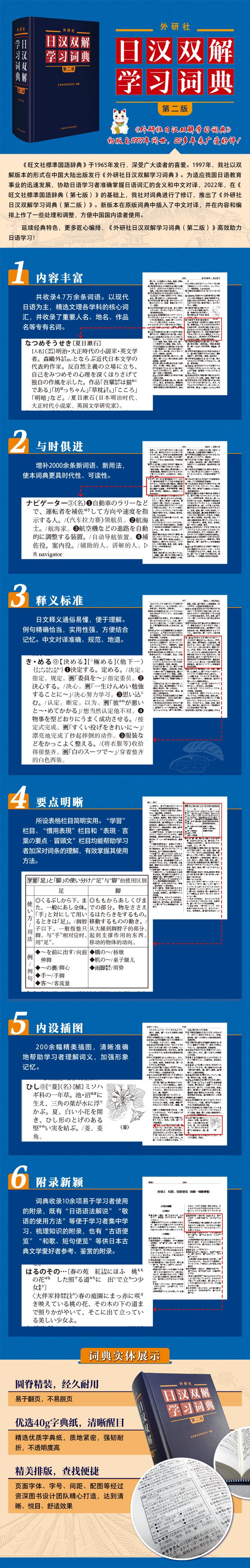 | Nombre del producto: | Prensa de Enseñanza e Investigación de Lenguas Extranjeras Diccionario de Aprendizaje Japonés-Chino (Segunda Edición con Tabla de 50 Sonidos) | formato: | |