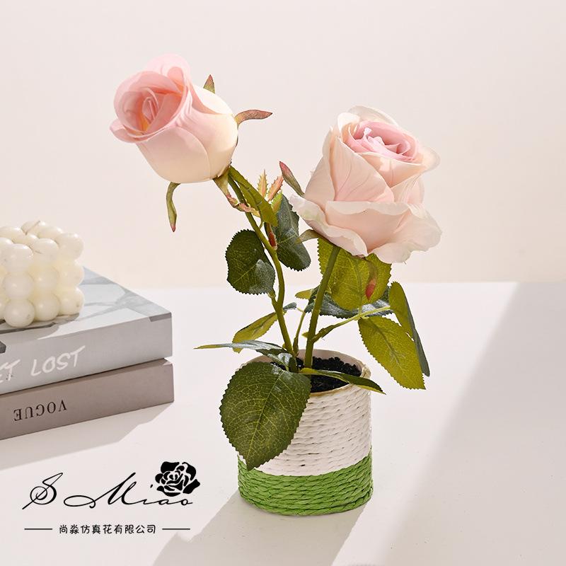 Material del producto: tela, flores de seda, maceta de cuerda de cáñamo.