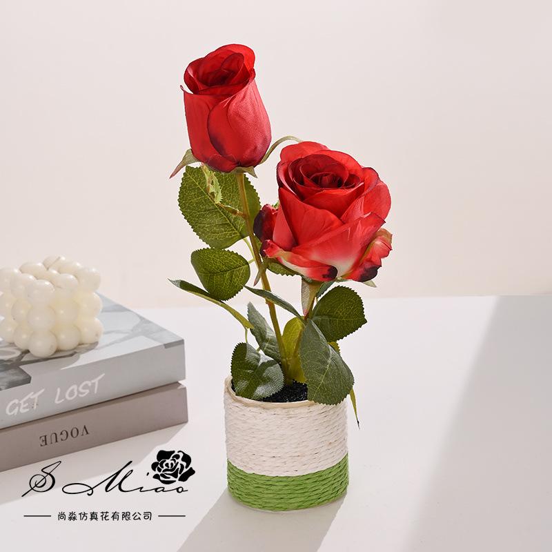 Rosa de dos cabezas en maceta (maceta de cuerda de cáñamo)