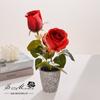 Rosa de dos cabezas en maceta (maceta de pulpa de papel)