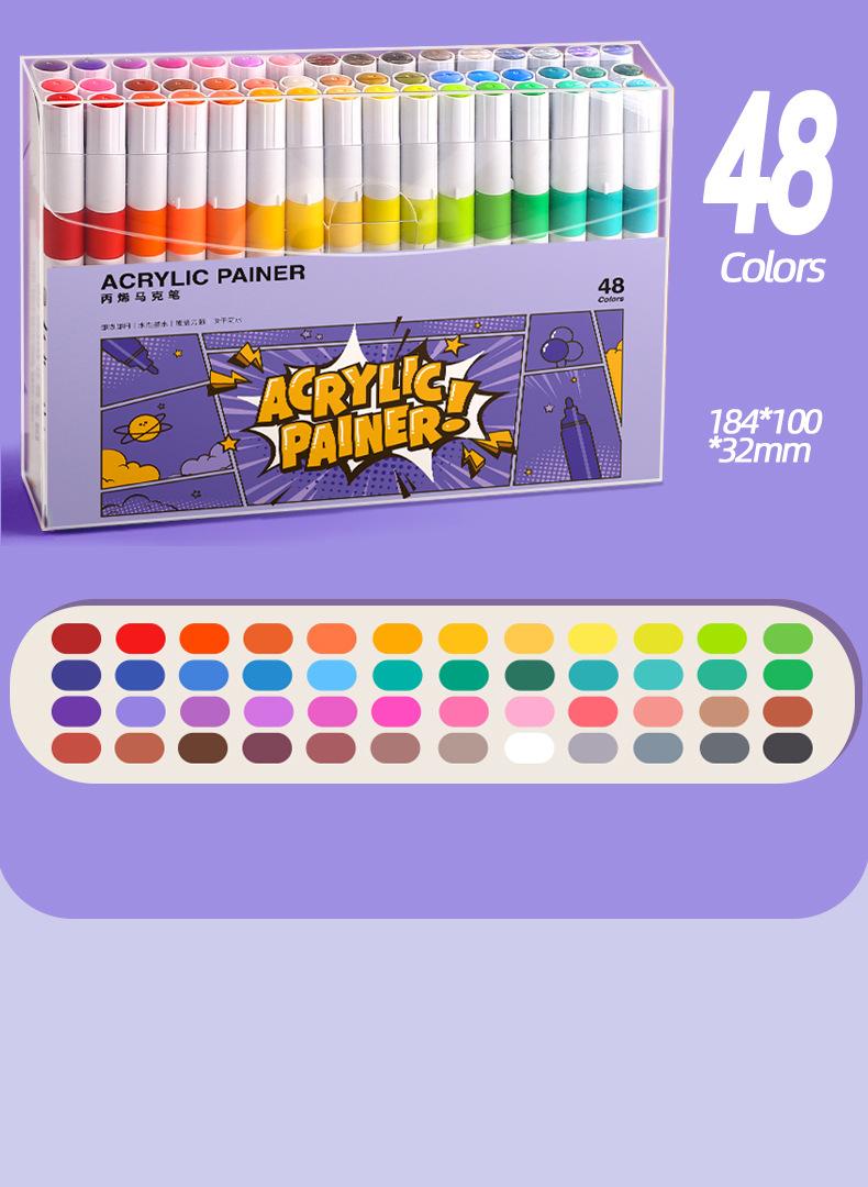 Rotulador acrílico de 48 colores, no tóxico, no transparente, de secado rápido, para niños y estudiantes de arte.