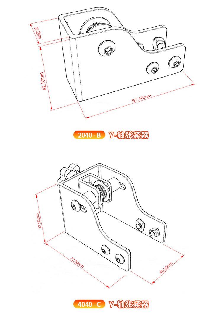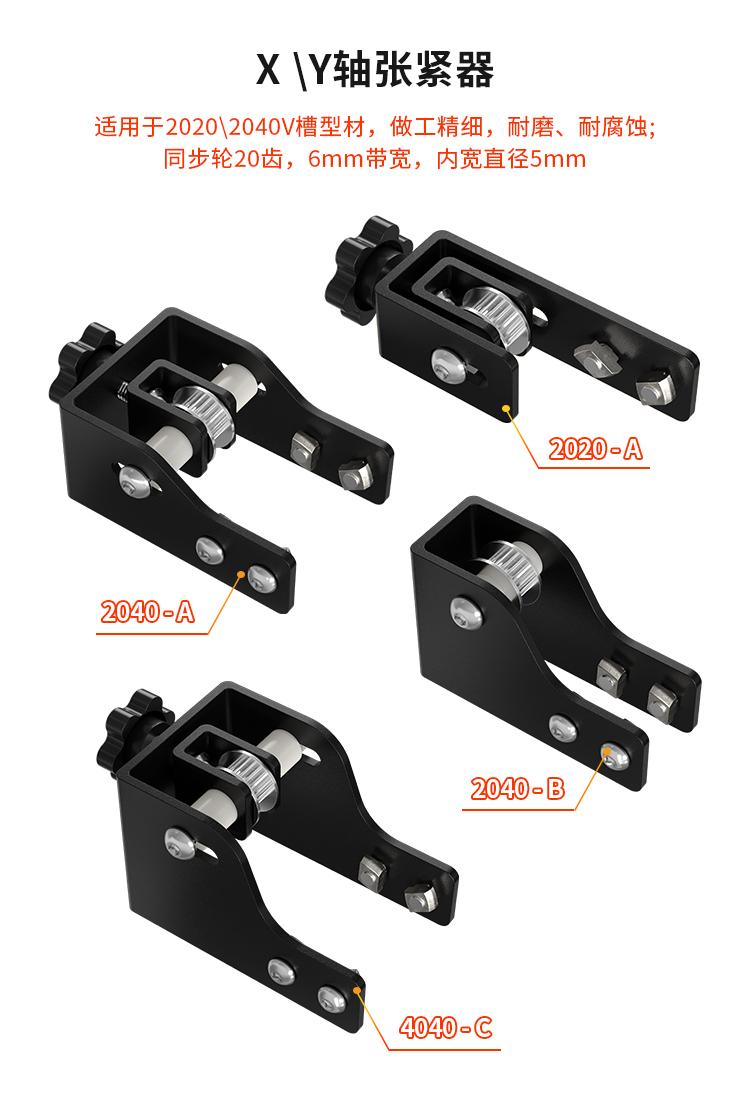 X-axis 2020 tensioner (2020-a), Y-axis 2040 tensioner horizontal version (2040-a), Y-axis 4040 tensioner (4040...