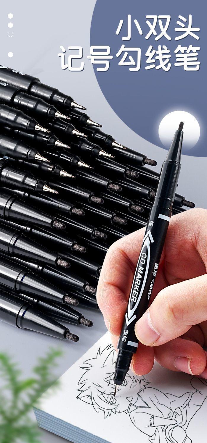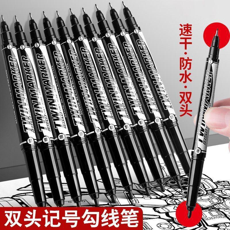 Marcador de doble punta negro resistente al agua a prueba de aceite que no se decolora impermeable de punta gruesa aceitoso de punta grande bolígrafo marcador estudiante oficina