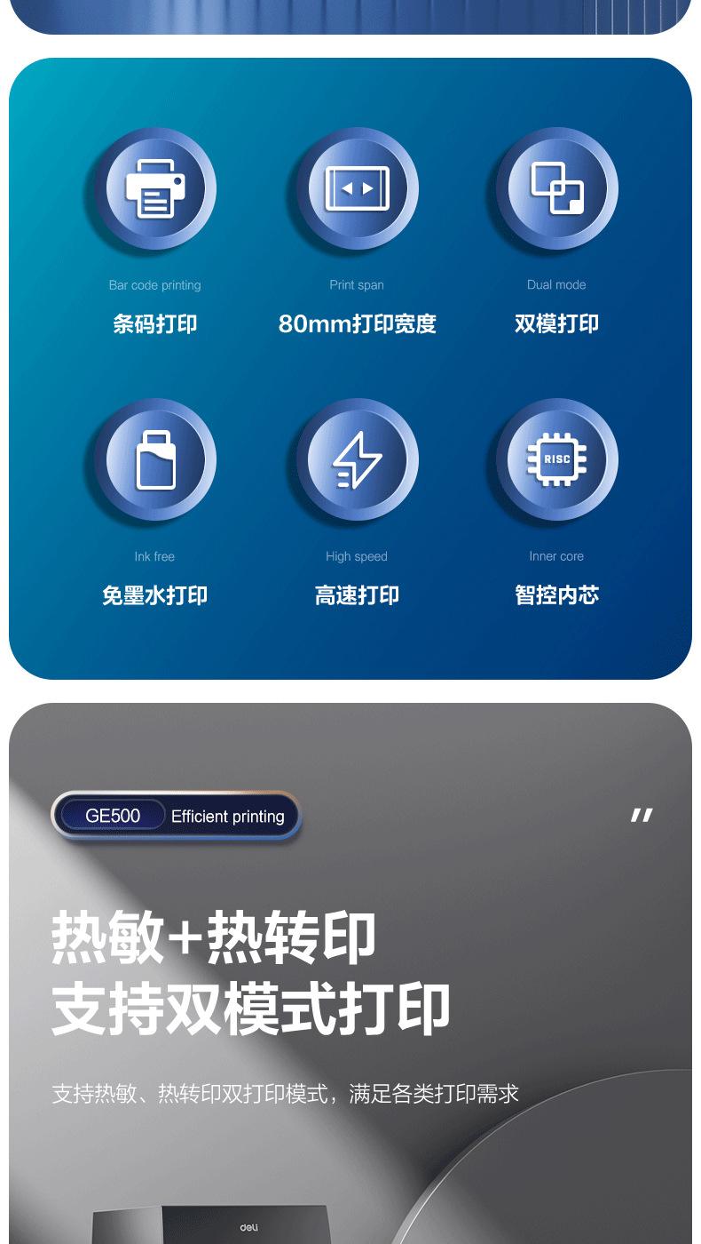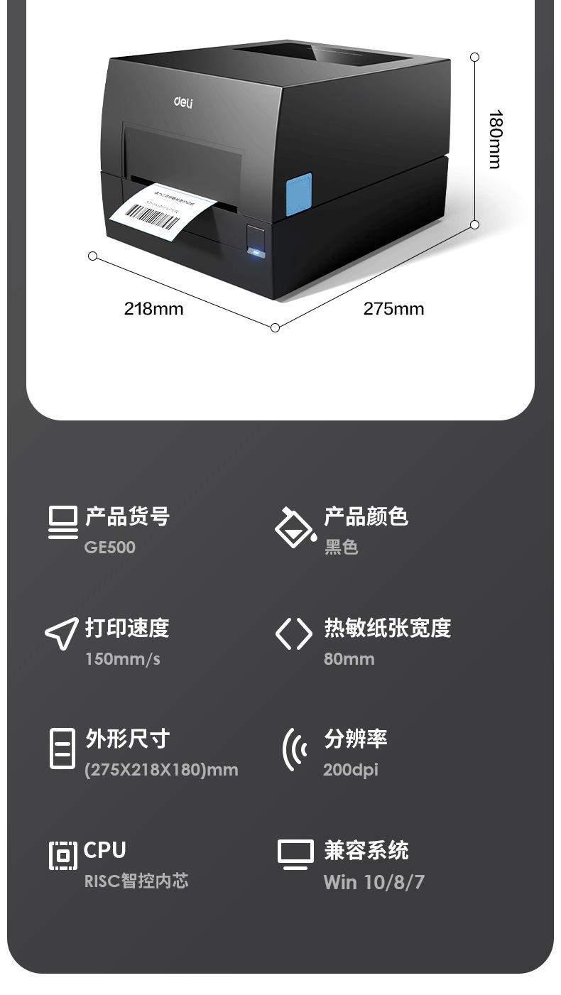 La impresora de etiquetas de código de barras Deli GE500 aumenta las ventas de la línea de red de código bidimensional de máquinas de etiquetas adhesivas Express