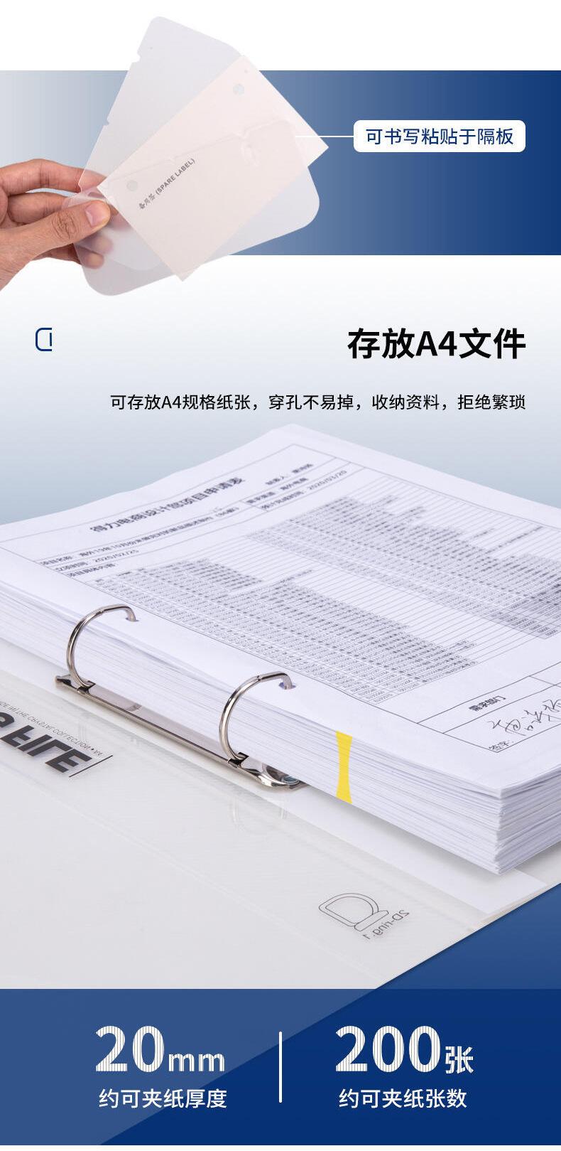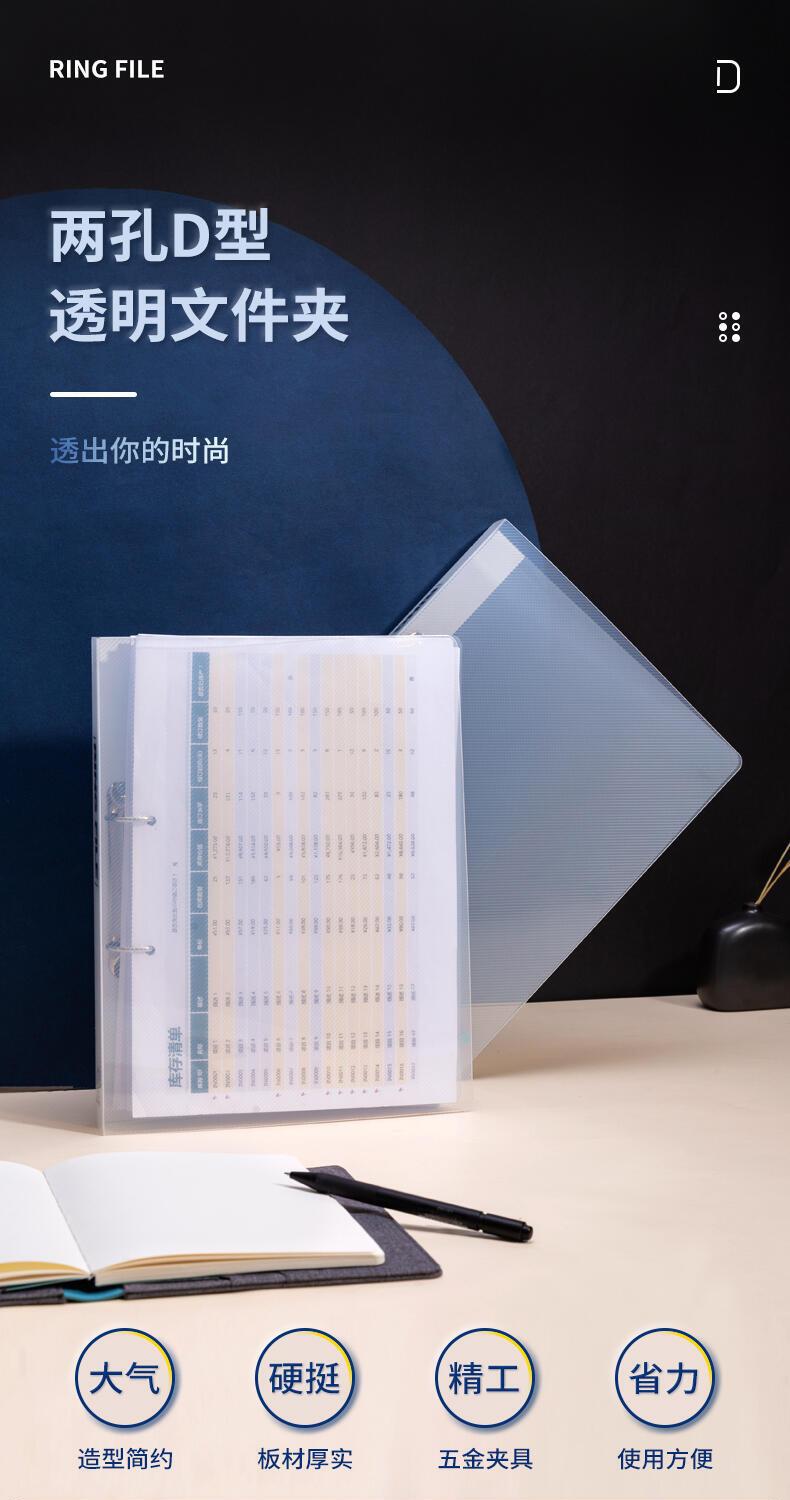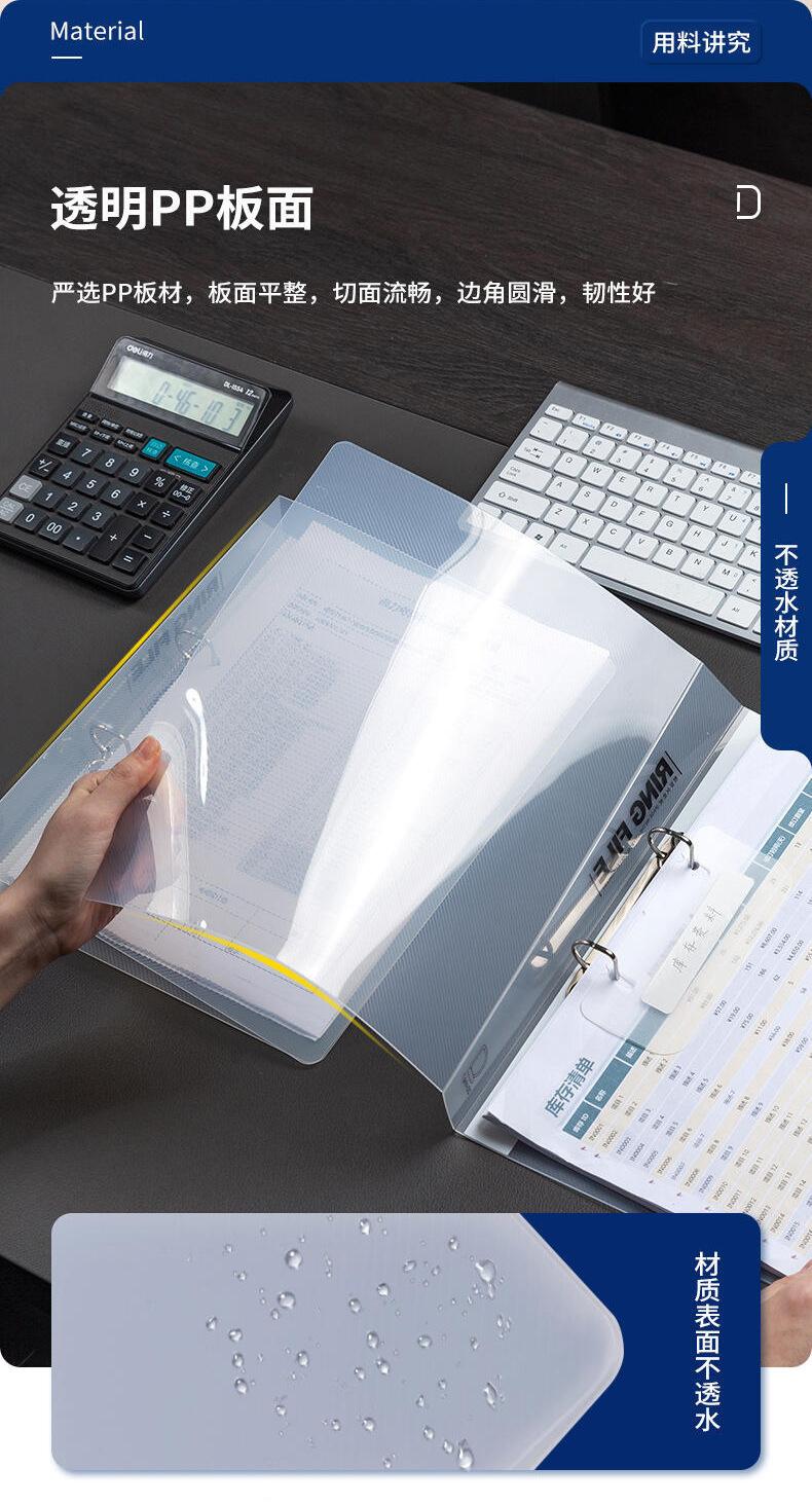 Carpeta de hojas sueltas de dos agujeros Deli 5381, tamaño A4, de gran capacidad, para encuadernación, almacenamiento de libros de datos, transparente, con bolsa de inserción