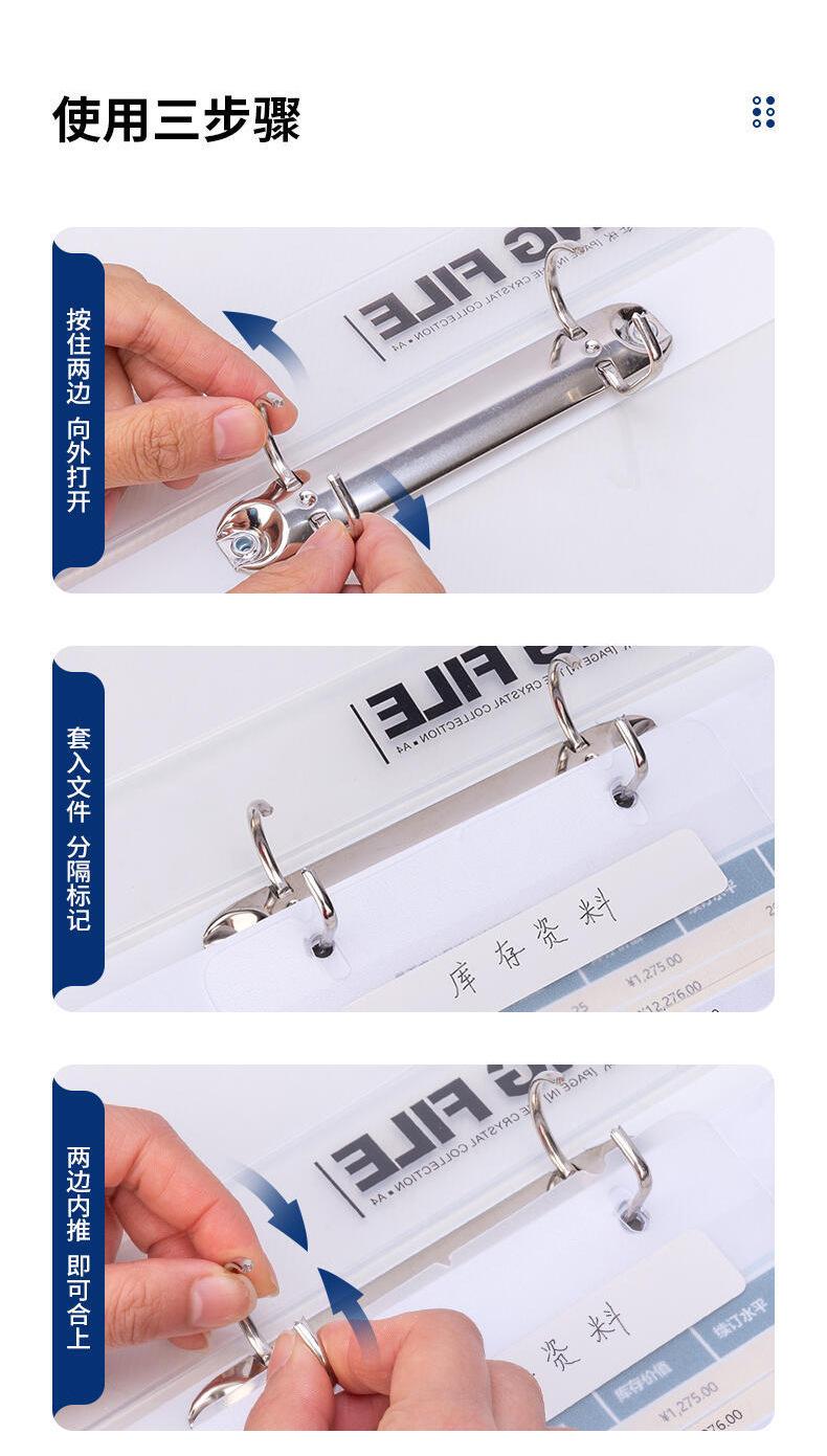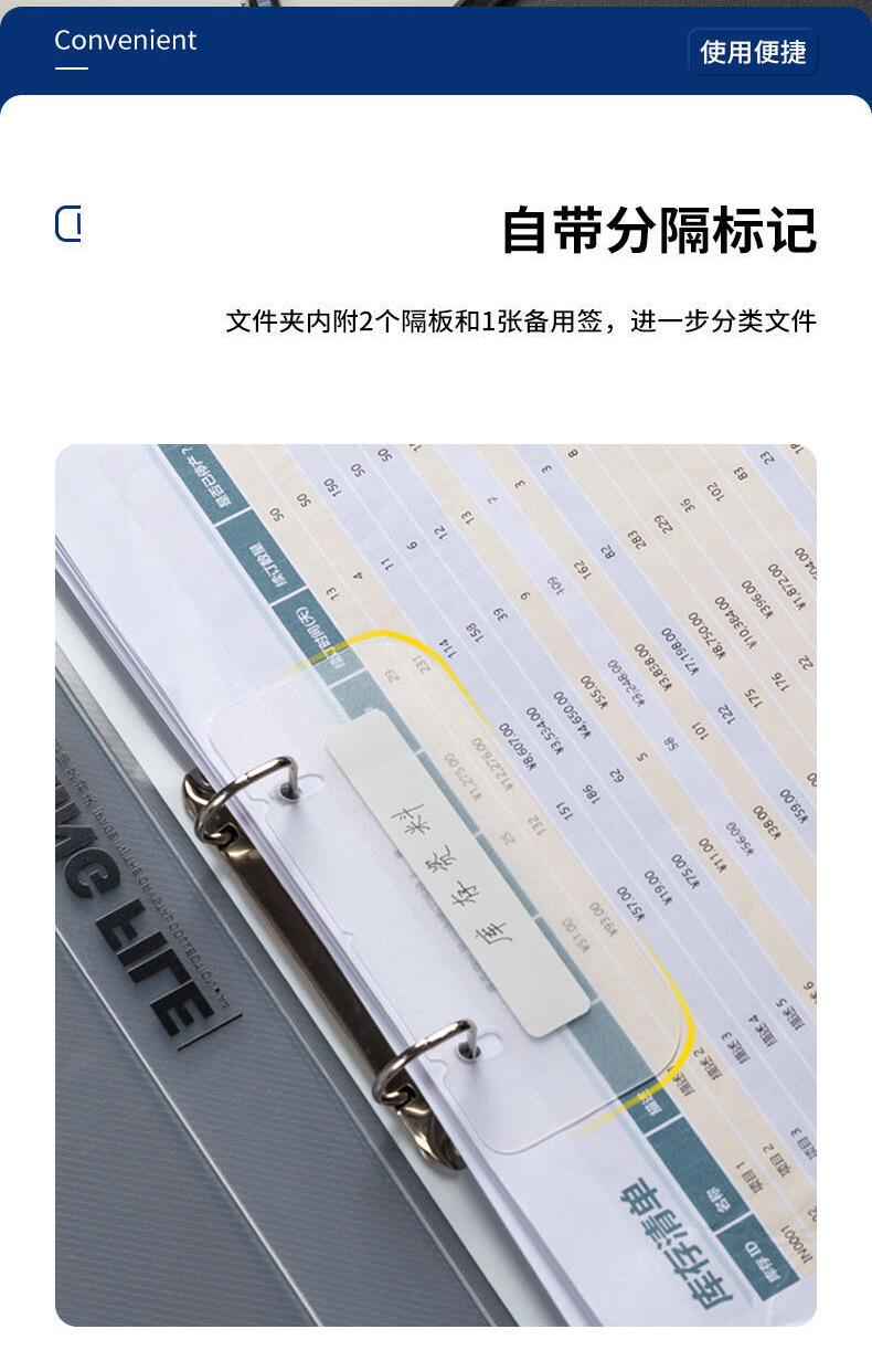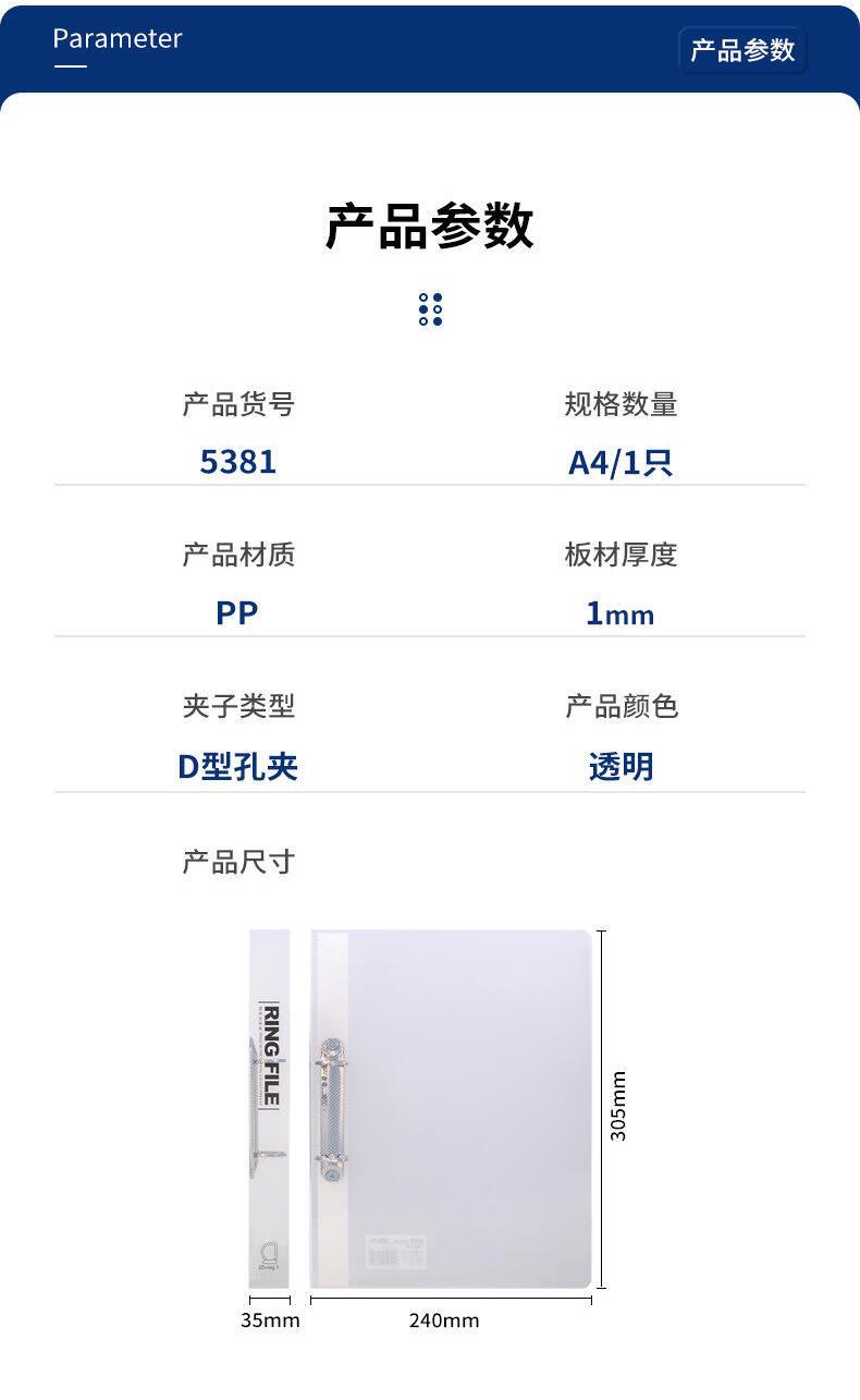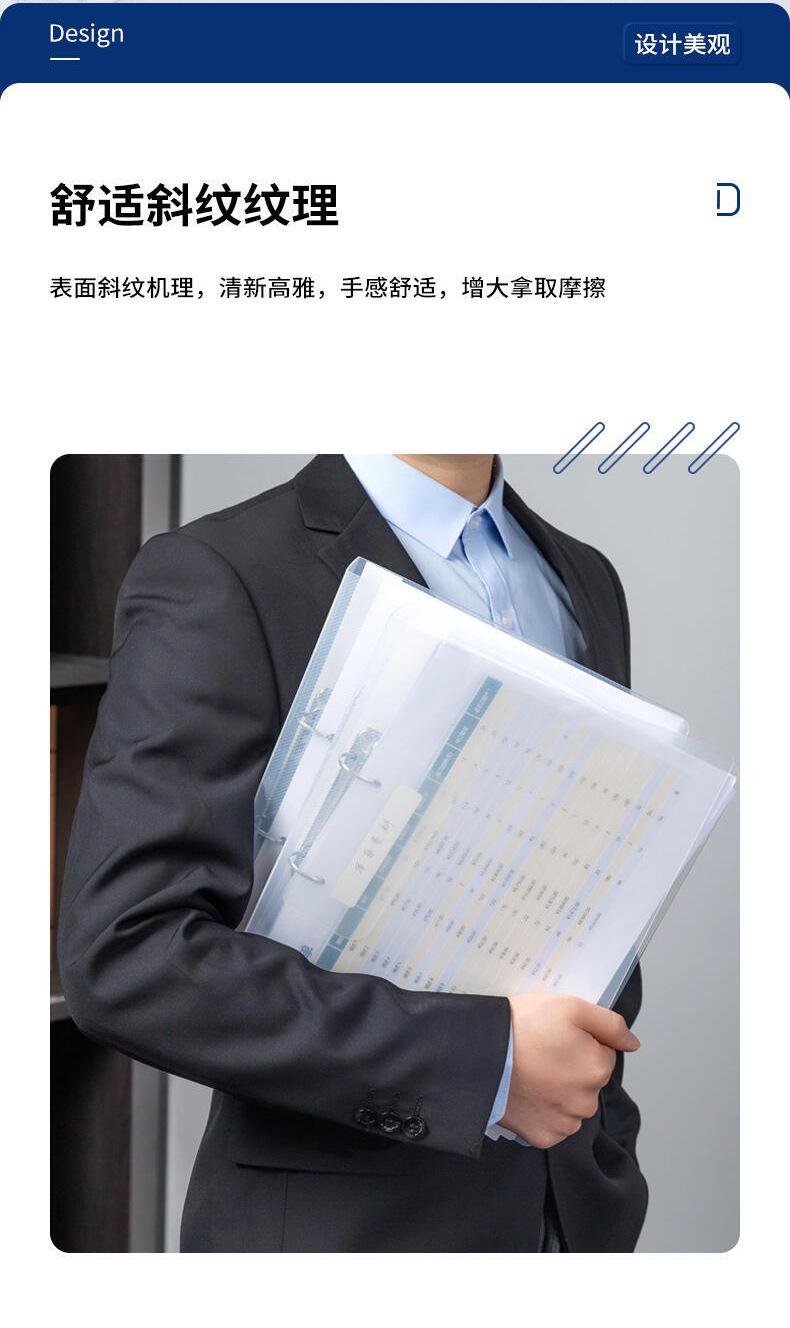 Carpeta de hojas sueltas de dos agujeros Deli 5381, tamaño A4, de gran capacidad, para encuadernación, almacenamiento de libros de datos, transparente, con bolsa de inserción