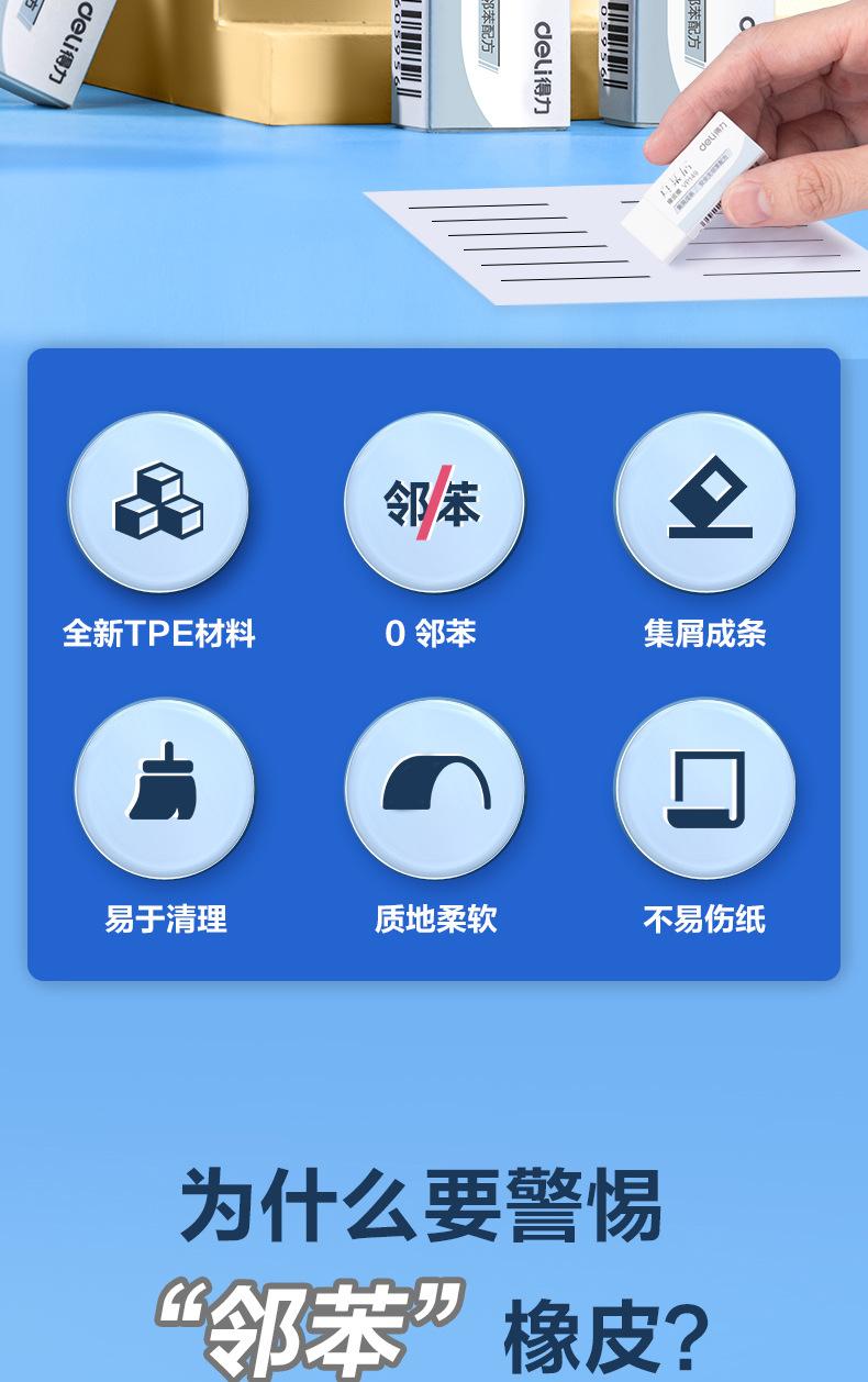 Borrador Deli True Scrap Eraser, borrador limpio de papelería para estudiantes de primaria y niños.