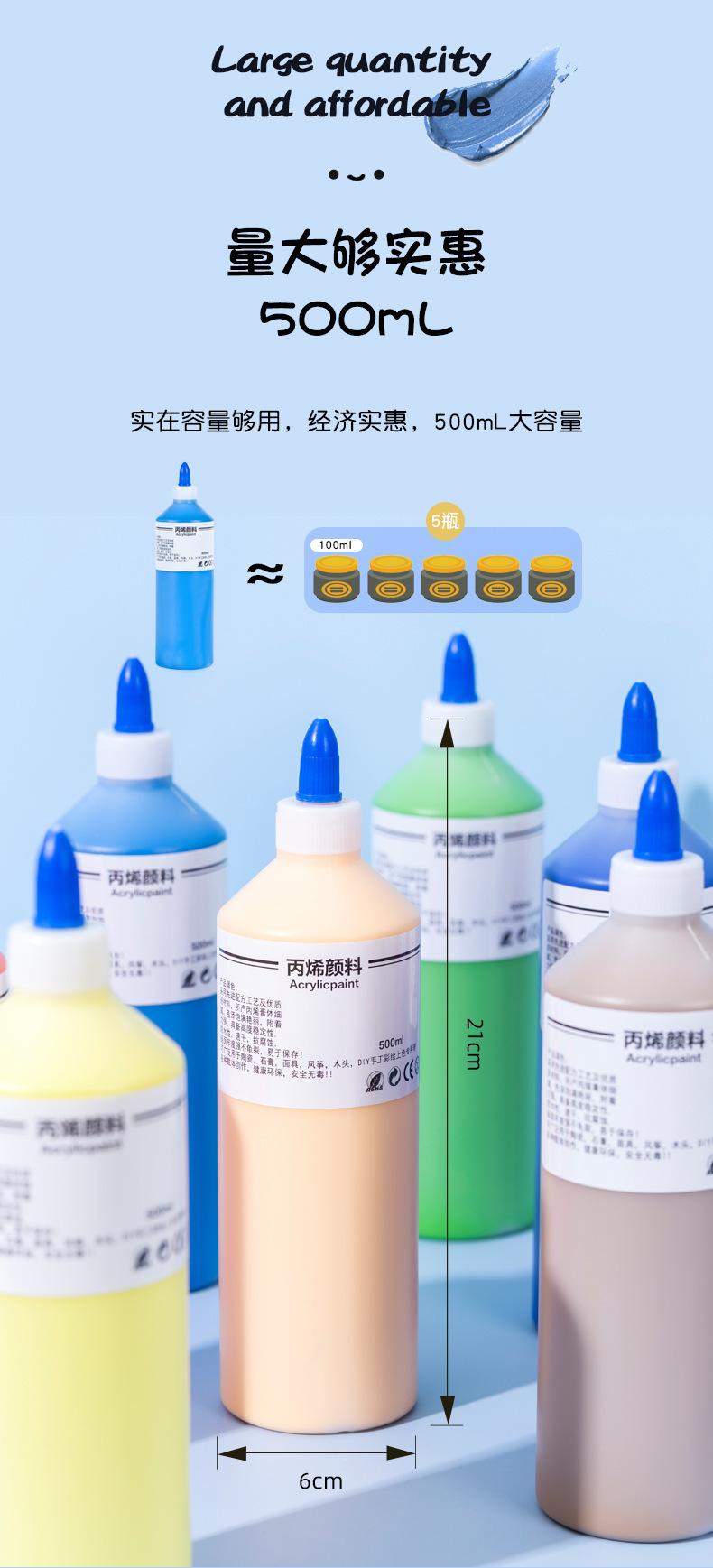 Botella Grande al por Mayor de Pintura Acrílica 500ml Graffiti Yeso Muñeca Pintada Jardín de Niños Colorear Pintura de Acuarela