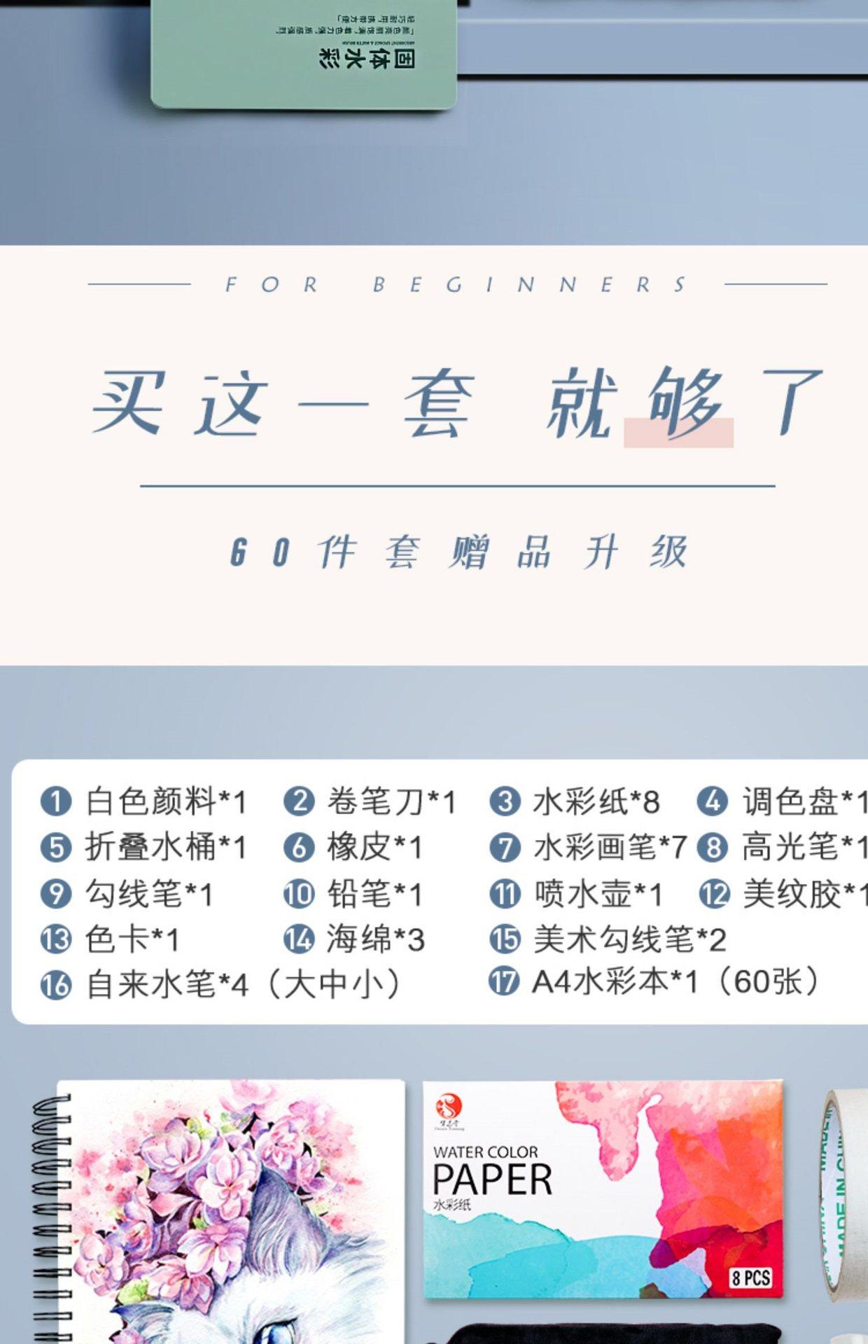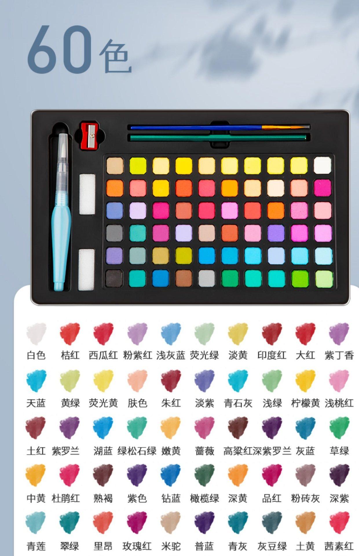 Pintura de acuarela sólida, 60 colores, juego de herramientas de pintura profesional para principiantes, pintura pintada a mano, 48 colores gouache