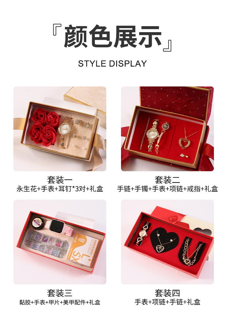 Preserved flowers + watches + earrings*3 pairs + exquisite gift box, Bracelet+bracelet+watch+necklace+ring+exq...