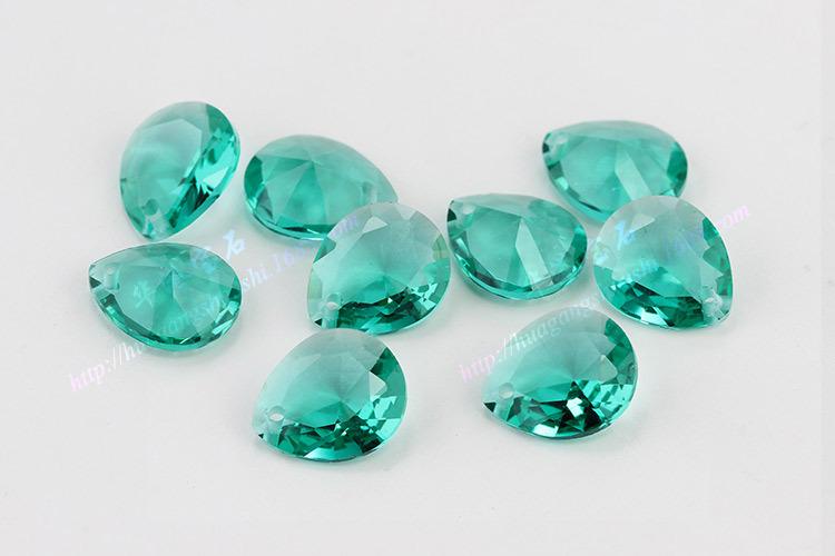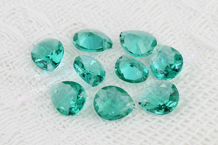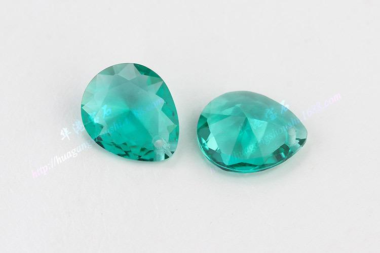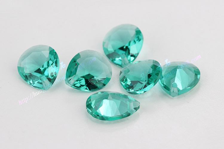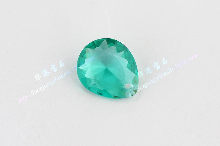 Anillos de piedra desnuda de vidrio verde claro en forma de pera con un solo agujero de gema Huagang, con fondo puntiagudo, en forma de gota, joyería de vidrio verde claro, piedra principal