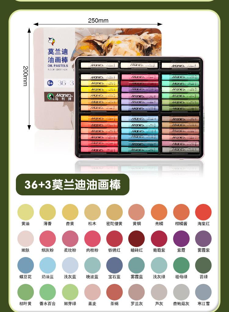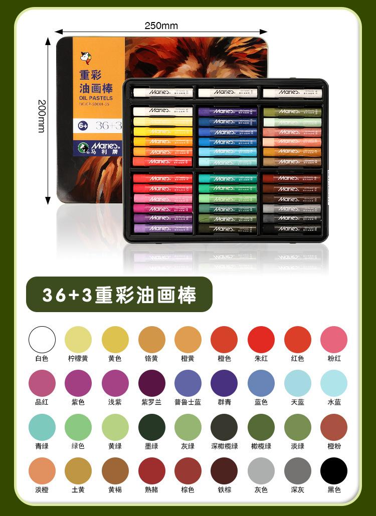 Barra de pintura al óleo Marley Heavy Color, crayón súper suave, arte especial para estudiantes de primaria, pintura de bricolaje, 24 colores, 36 colores, caja de hierro