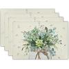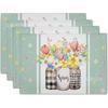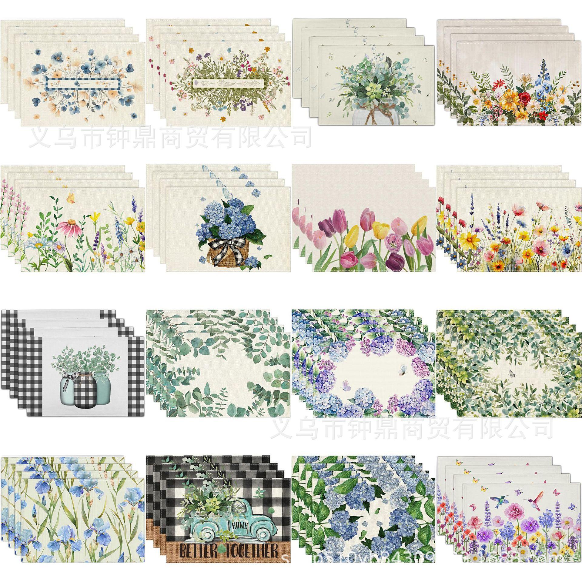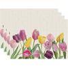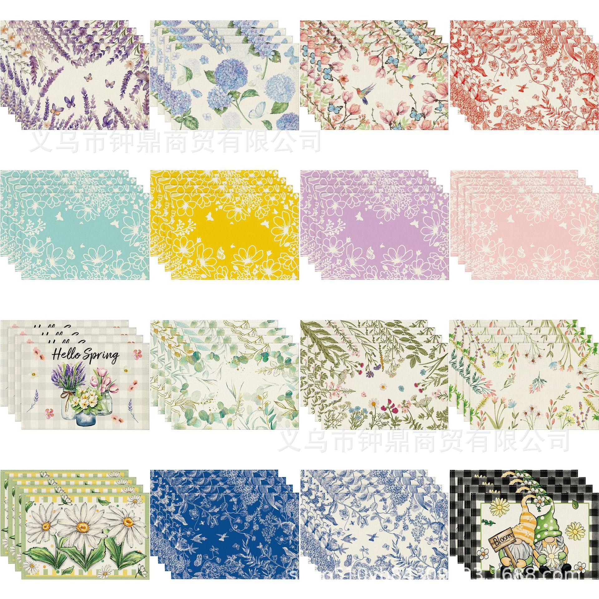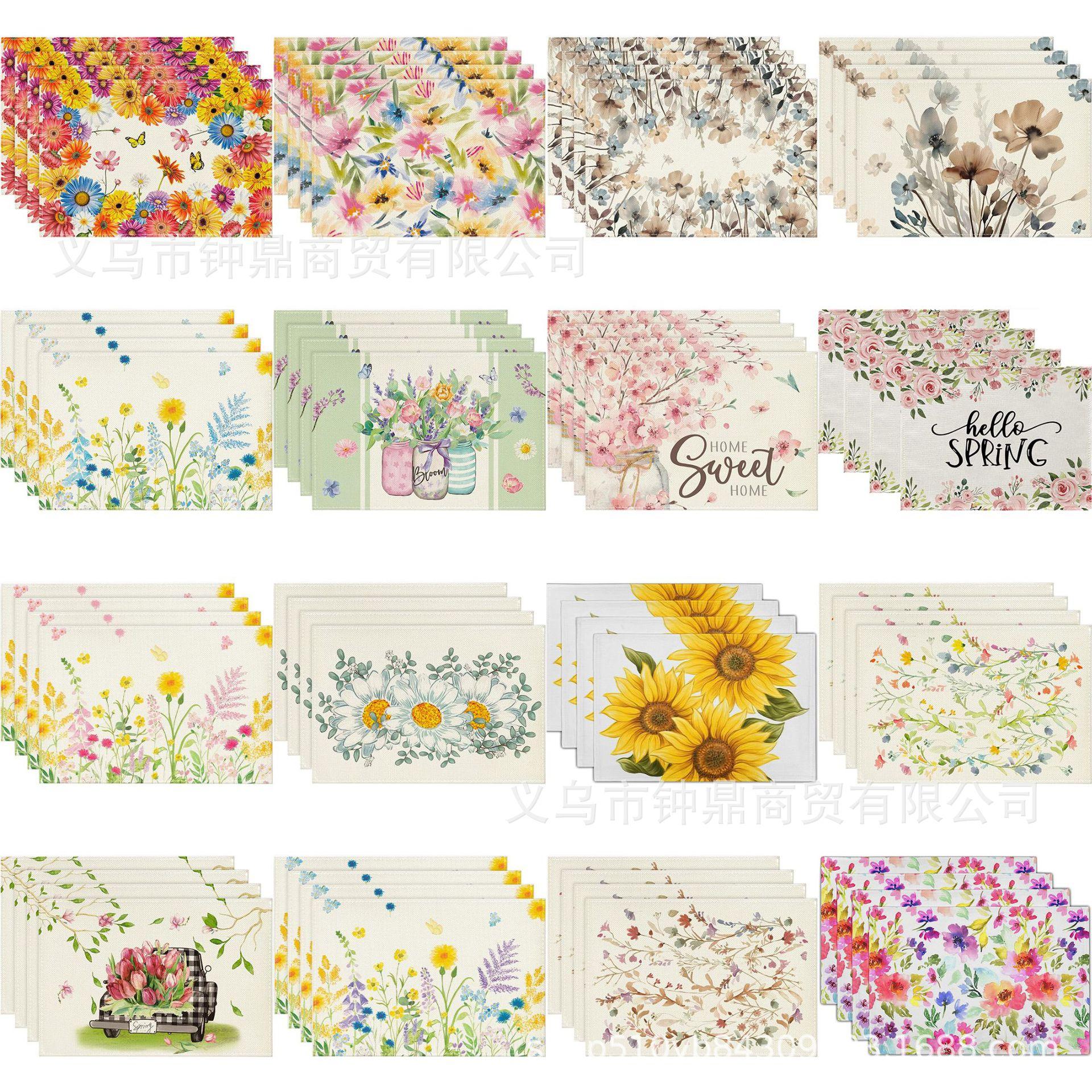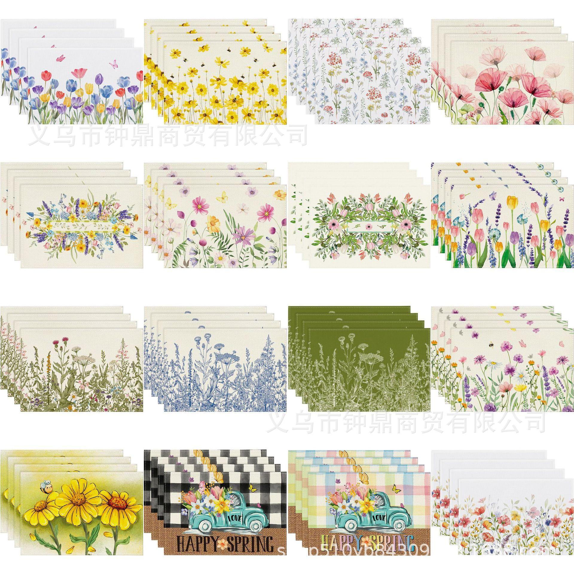 Amazon Explosions Mantel Individual de Primavera Colección Grande Patrón de Bola Bordado de Tulipanes Material de Lino Mantel Individual Decorativo Americano