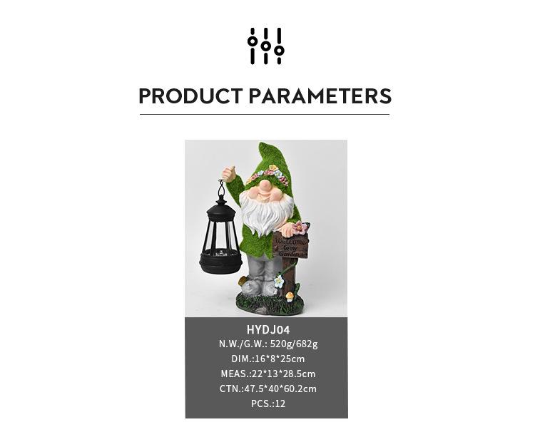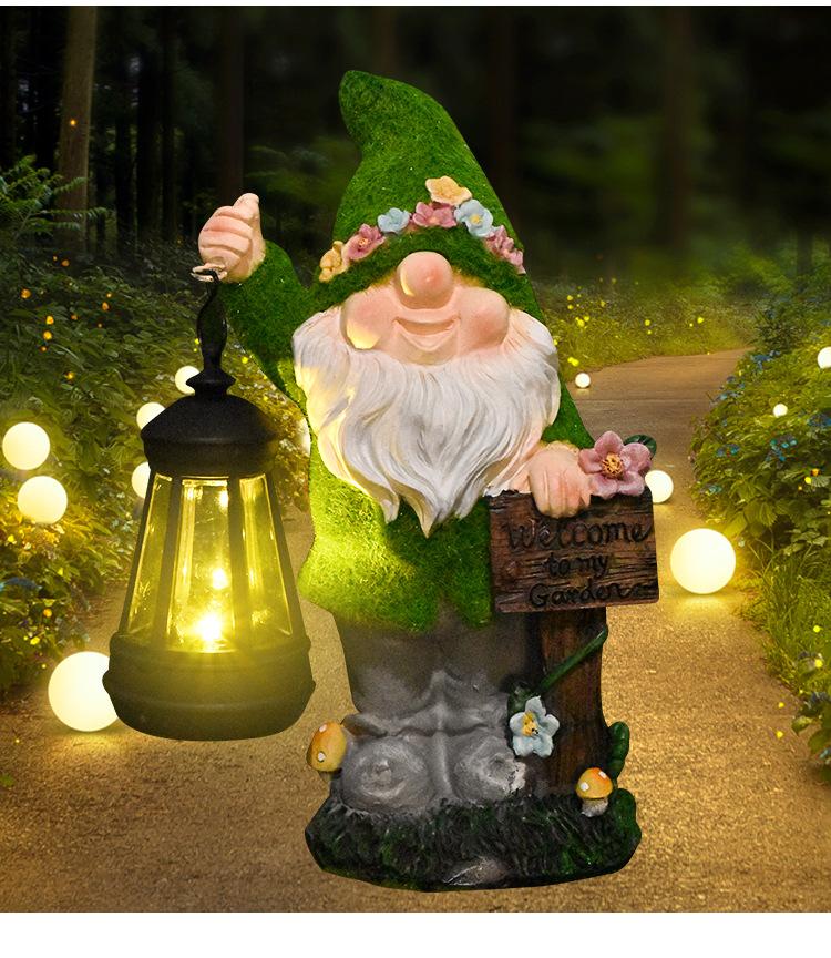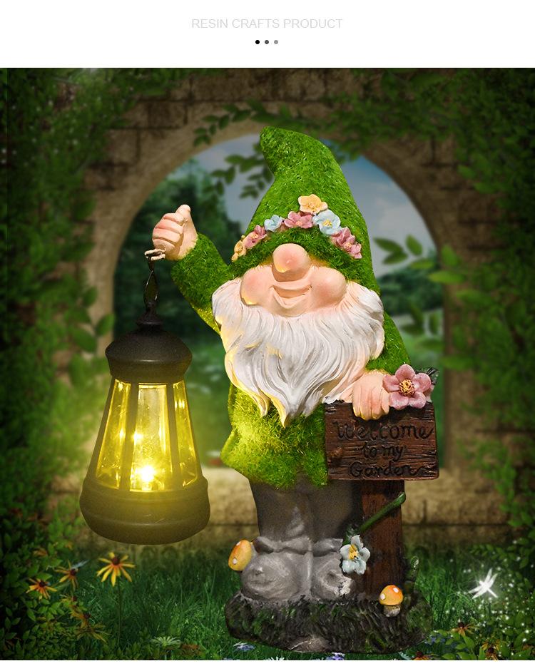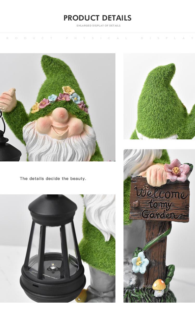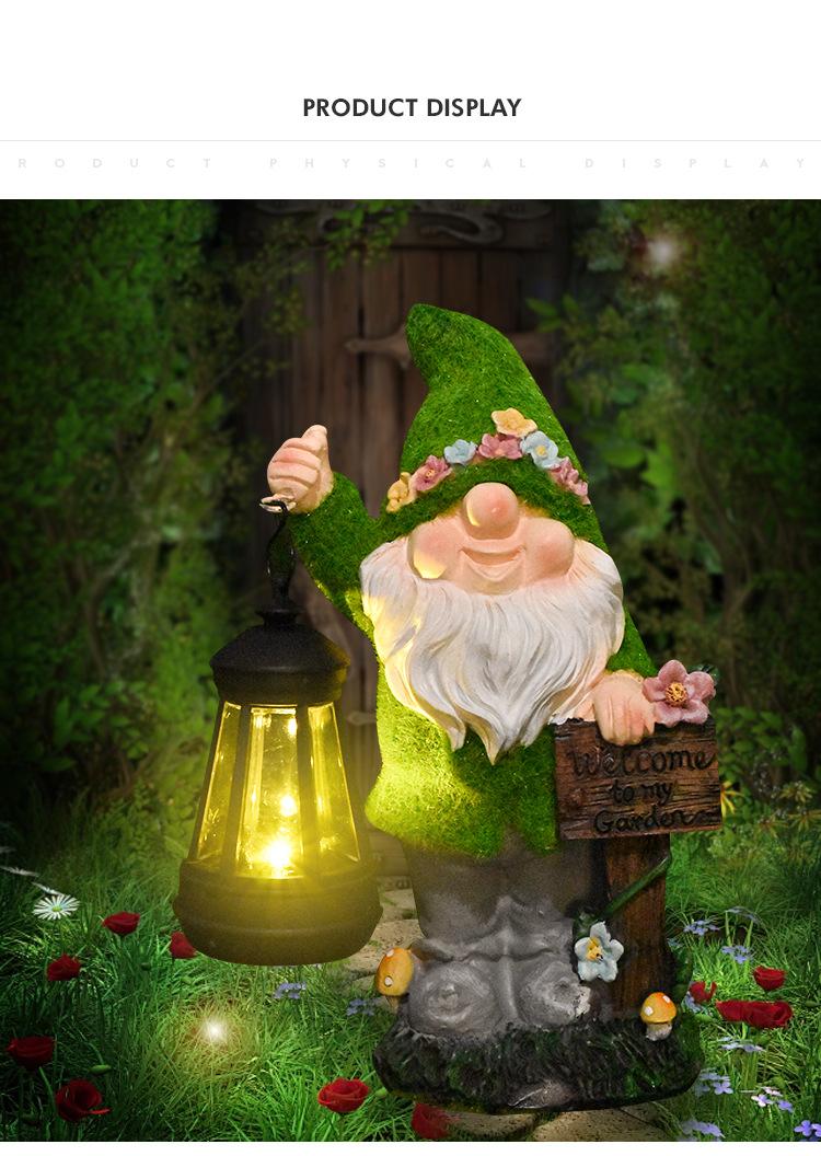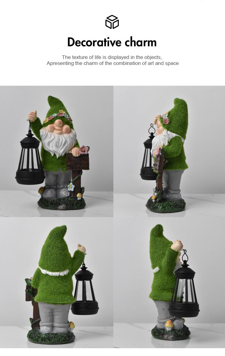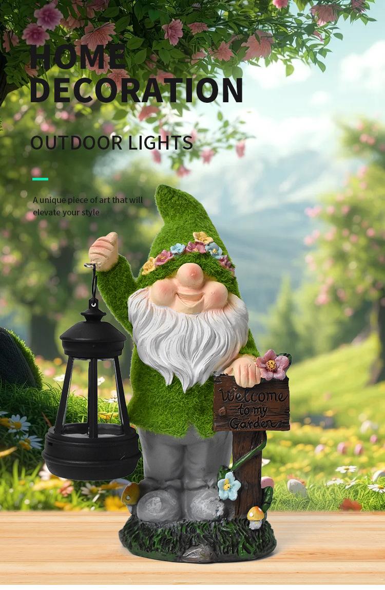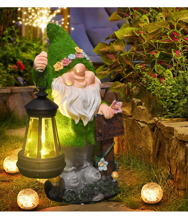 Lámpara solar transfronteriza de flocado, lámpara enana para exteriores, adornos de resina, decoración de patio, decoraciones de jardín enanas