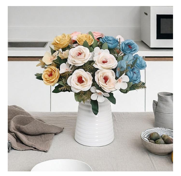 Flor Artificial Dy Rosa Princesa de Alta Gama Ramo Falso Terminado Fabricante Venta al Por Mayor Decoración del Hogar Boda Boda