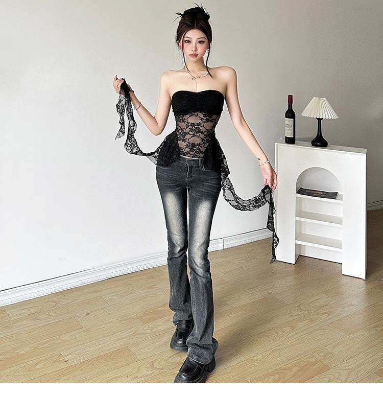 Pure Desire - Top de tubo sin mangas sexy de Spice Girl para mujer, otoño e invierno, nuevo top ajustado con costuras de encaje, moderno
