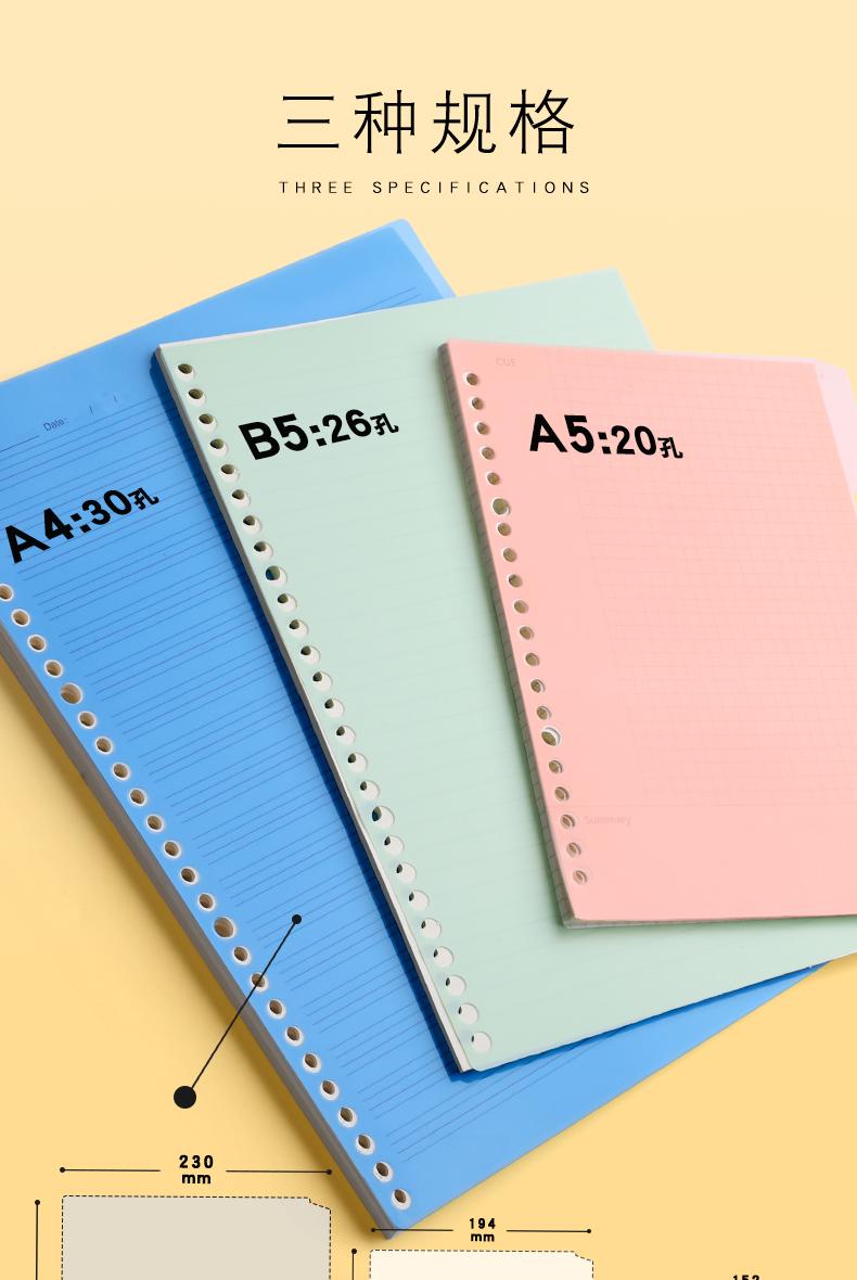 Carpeta separadora de hojas sueltas de plástico A4, 30 agujeros, color, B5, 26 agujeros