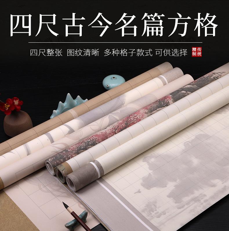 Micro-spray batik papel de arroz medio cocido pincel cuadrado caligrafía creación exposición nacional obras especiales papel libro de admoniciones texto de mil caracteres