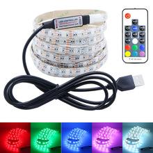 Tira de luces LED 5050 banco de energía USB 5V flash colorido cambio de color RGB fondo de TV escritorio de computadora control remoto tira de luces