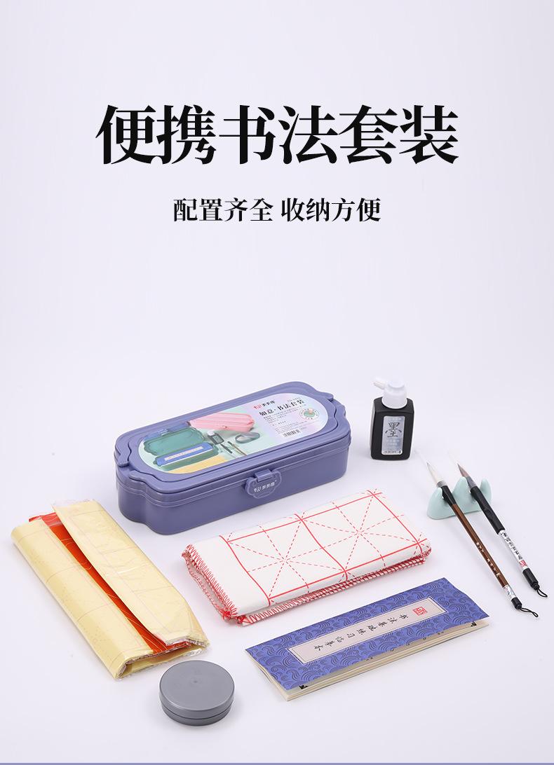 Juego de 10 piezas de caligrafía para principiantes, tinta, papel, piedra de entintar, rotulador, almacenamiento, cuatro tesoros de estudio, caja de almacenamiento portátil, juego de pinceles