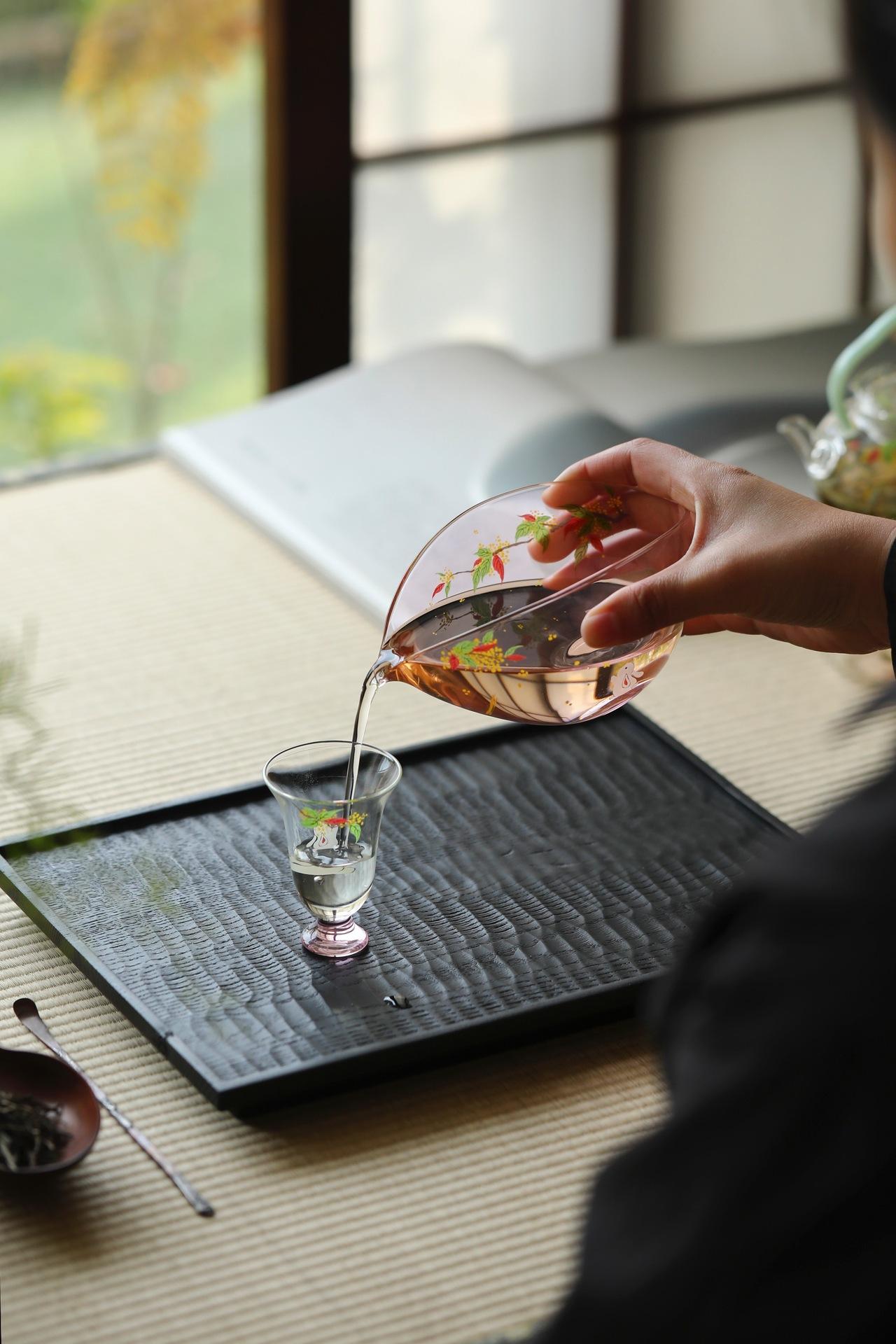 Yishi Tea Talk Copa de Feria de Vidrio Osmanthus Copa Dispensadora de Té Engrosada Mar de Té Japonés Resistente al Calor Juego de Té Doméstico de Alta Gama