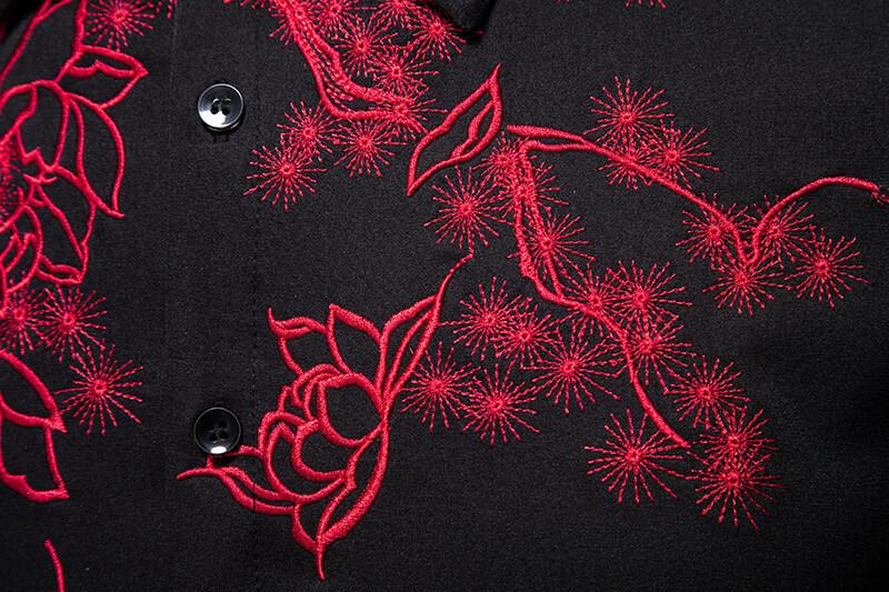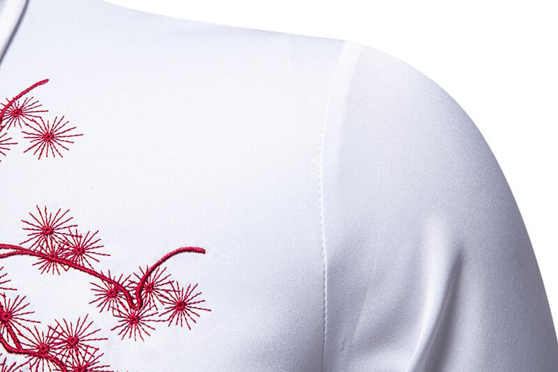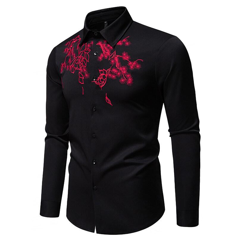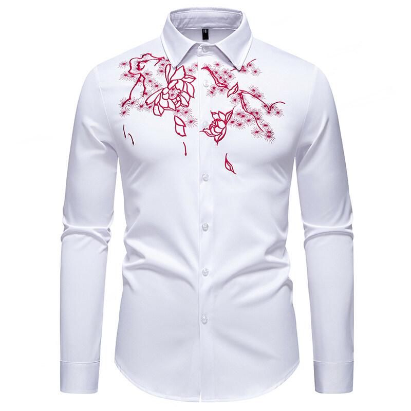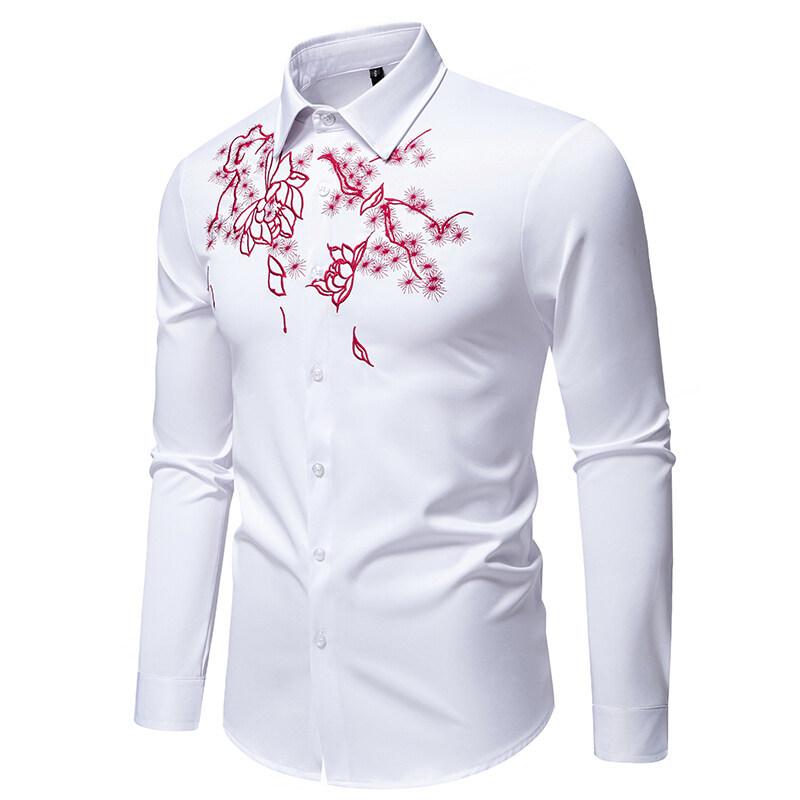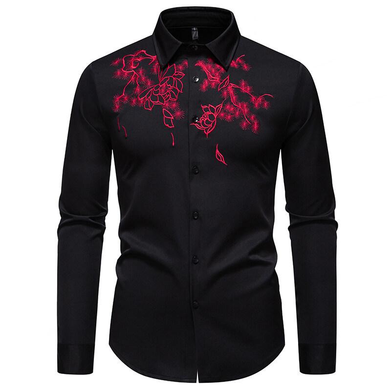 Camisa de manga larga con bordado de flores para hombre, nueva camisa informal de moda de talla grande, de Amazon, transfronteriza, 2025