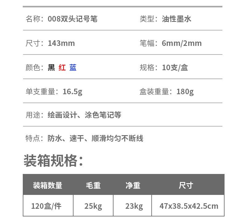Marcador de figura de otoño 008, bolígrafo grande aceitoso de doble cabeza, marcador logístico, bolígrafo POP Poinel, marcador de envío, marcador de secado rápido