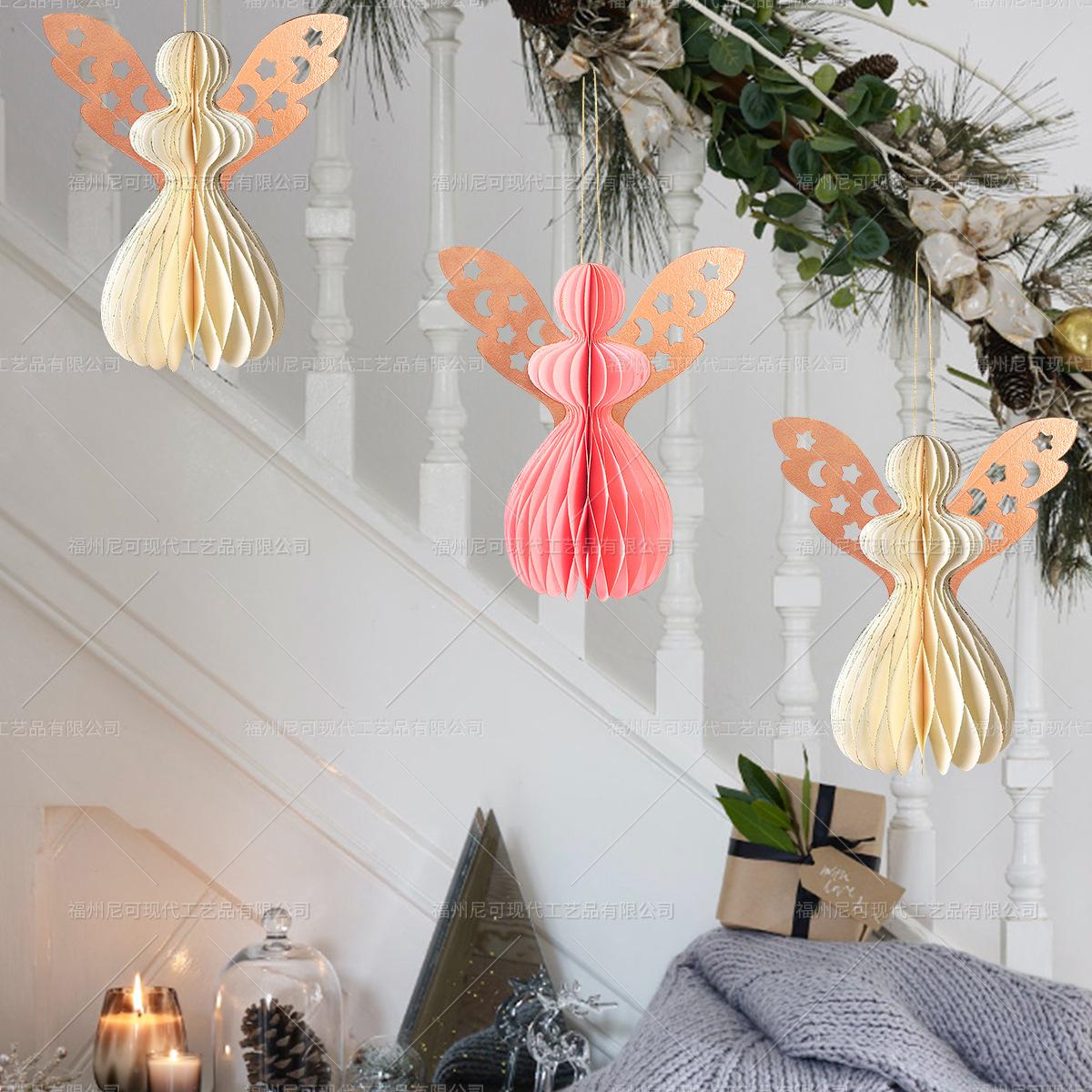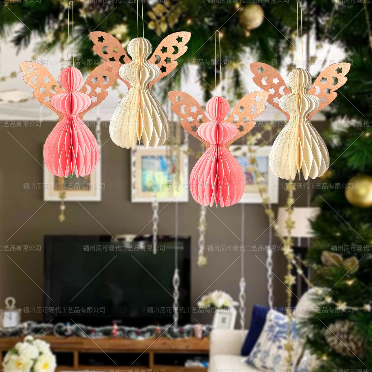 Colgante de bola de panal de ángel, papel grueso, papel espolvoreado, decoración de diseño de bola de panal, colgante temático para fiesta de boda, cumpleaños