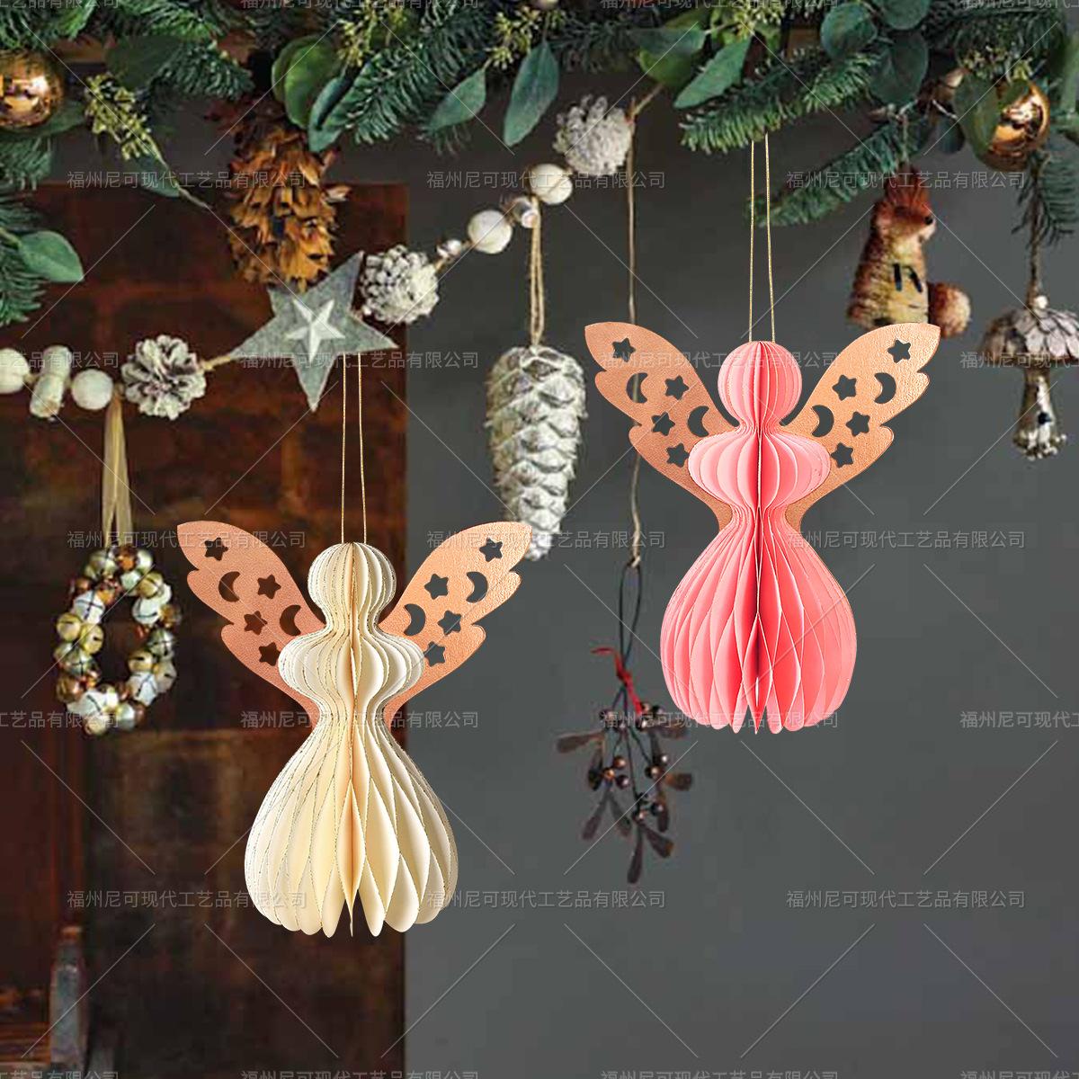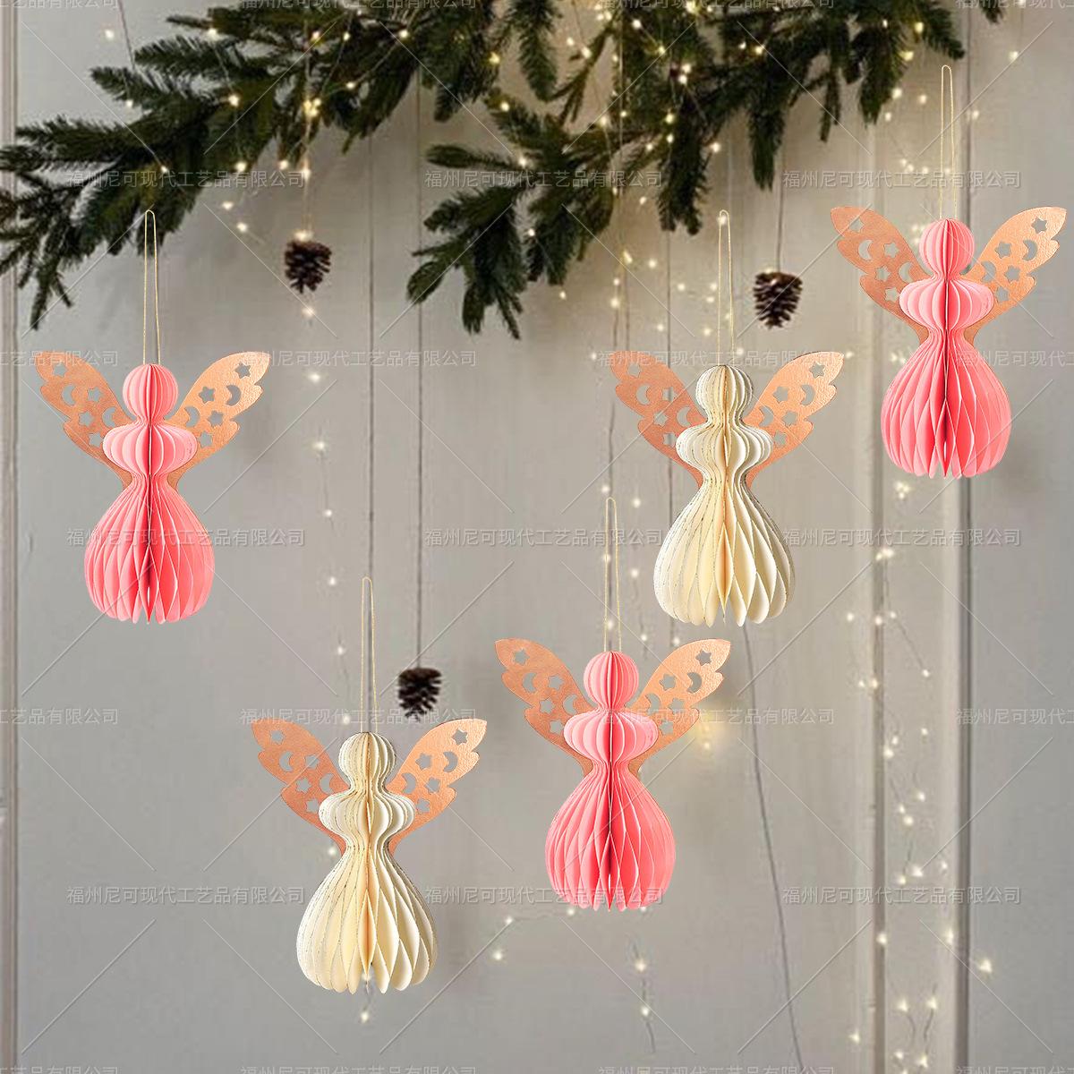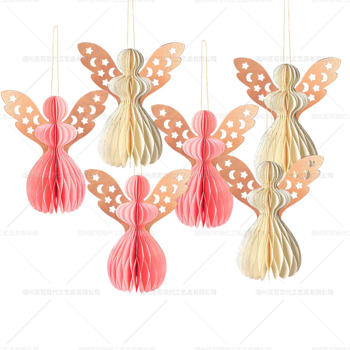 Thick paper angel honeycomb ball ornament-off-white, Thick paper angel honeycomb ball ornament-pink