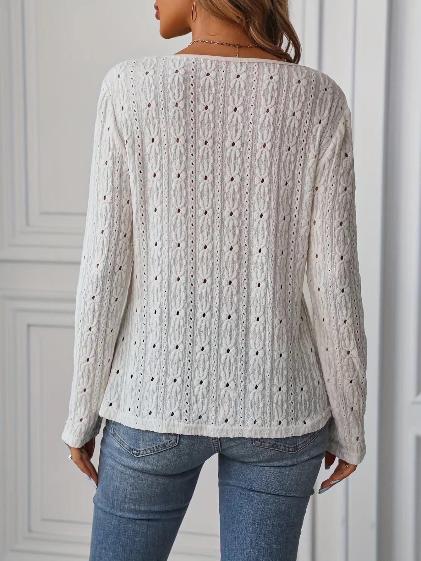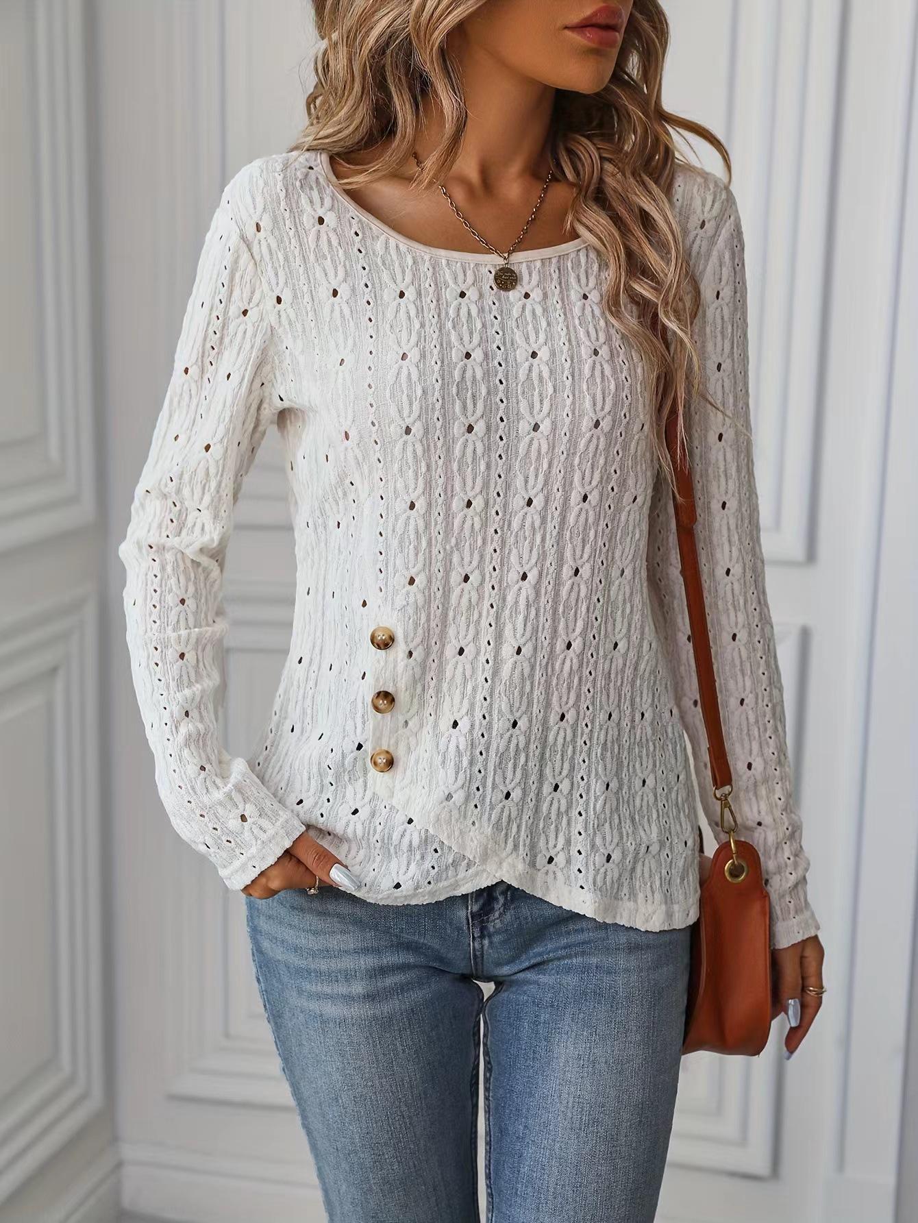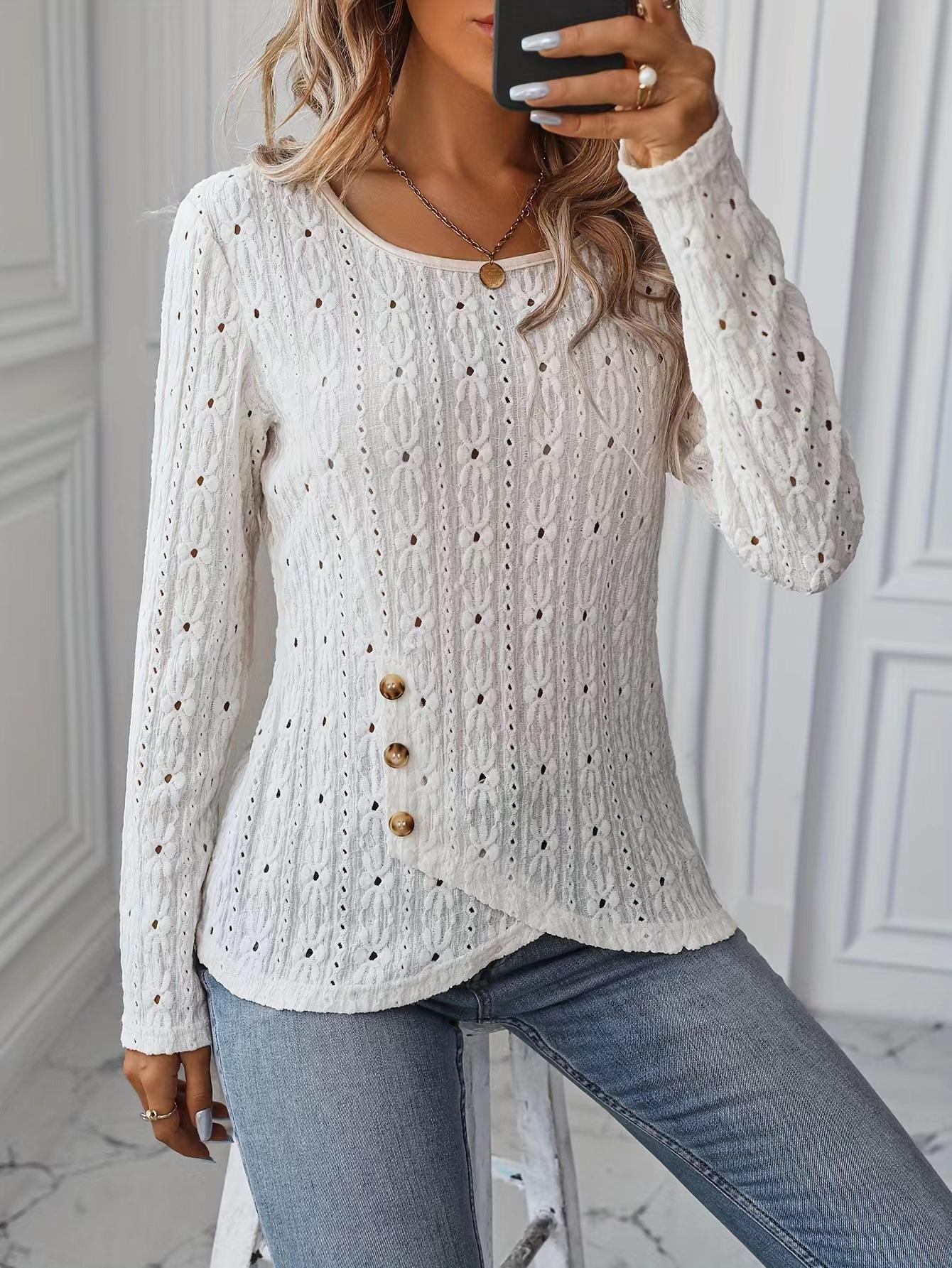 Camisa pequeña de moda para mujer primavera 2025 nueva transfronteriza comercio exterior Europa y Estados Unidos Amazon manga larga botones de punto jacquard