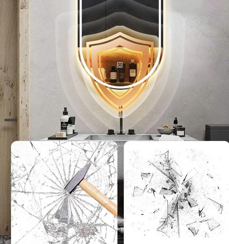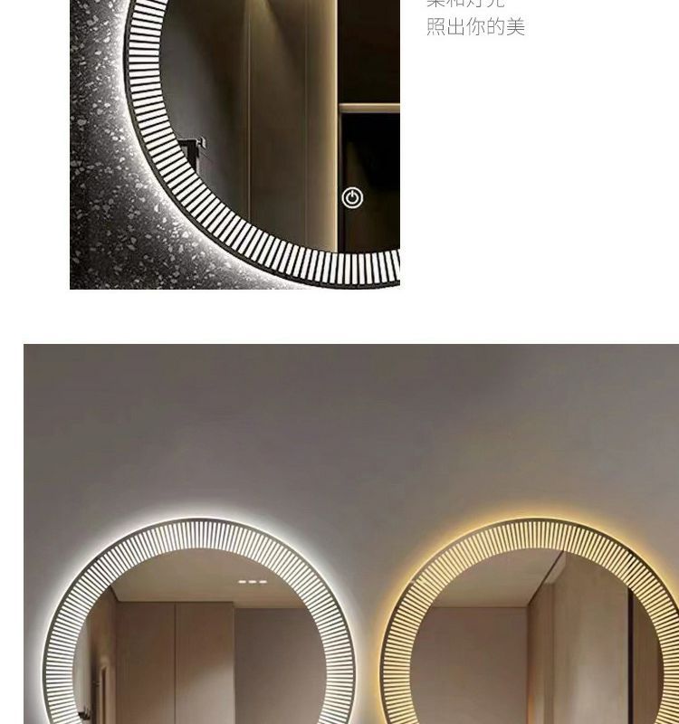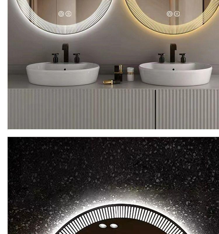 Espejo de baño inteligente, redondo y sencillo, con luz LED de pared y antivaho, para maquillaje y baño.