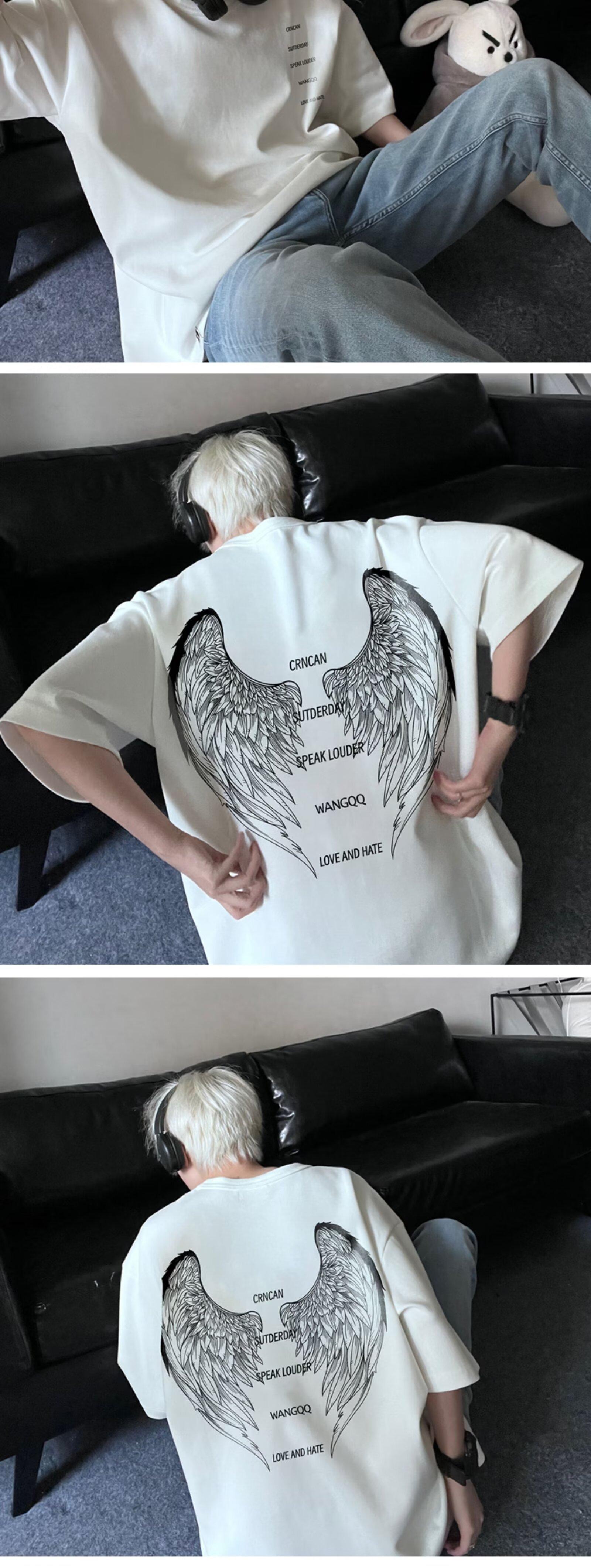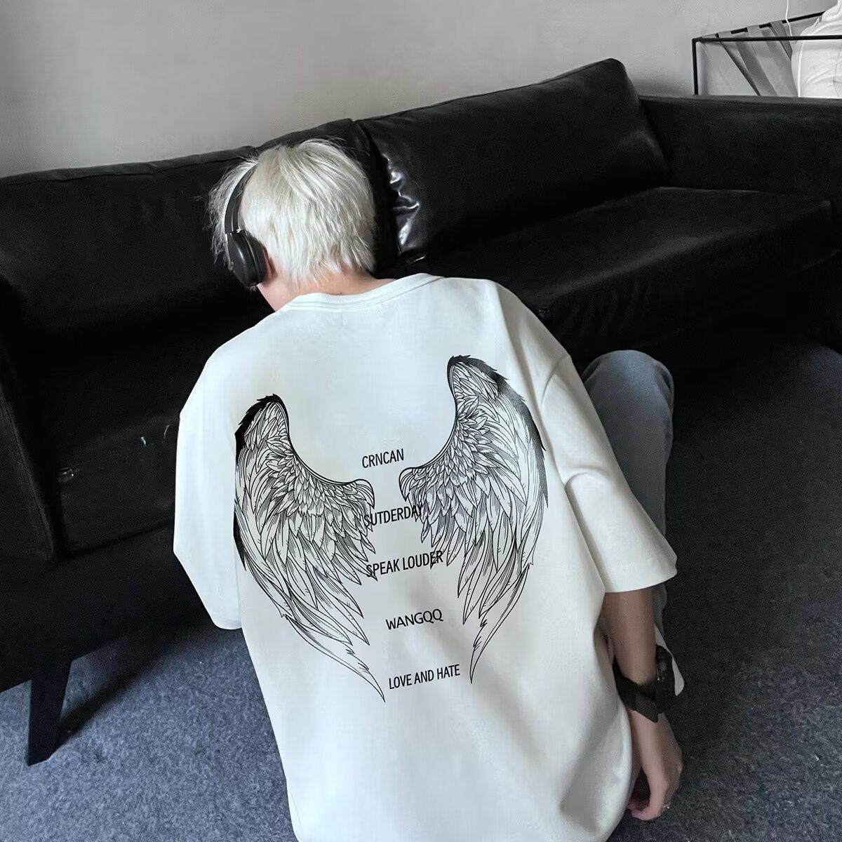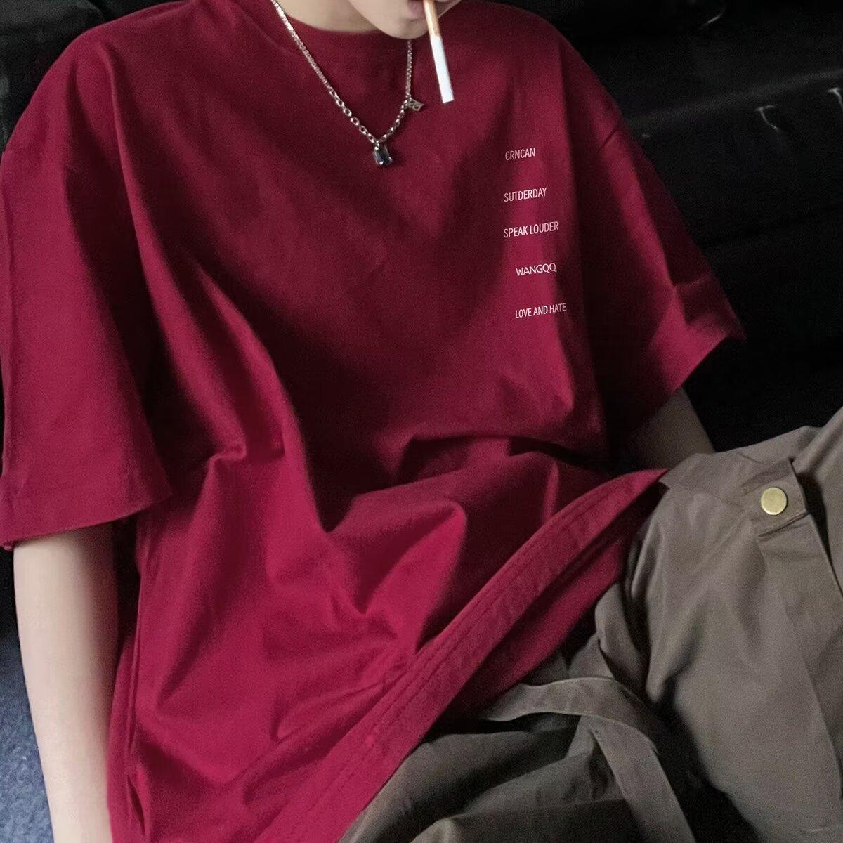 Nueva camiseta de manga corta para hombre, estilo coreano de verano, moderna, sencilla, de media manga, holgada, informal, estampada, de algodón puro, de marca de moda.