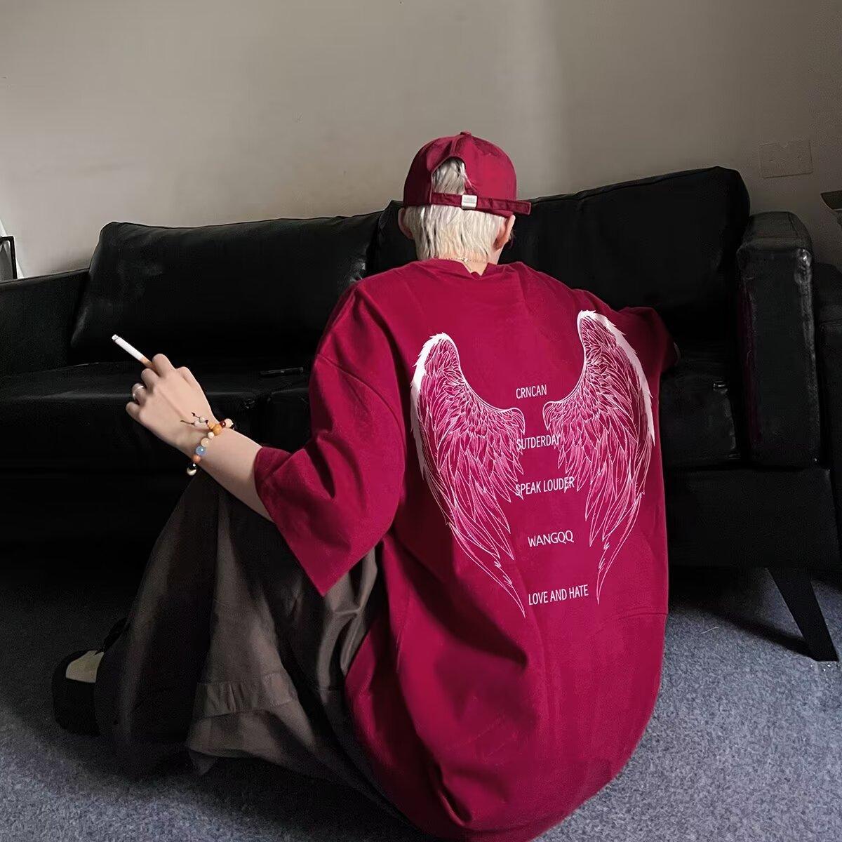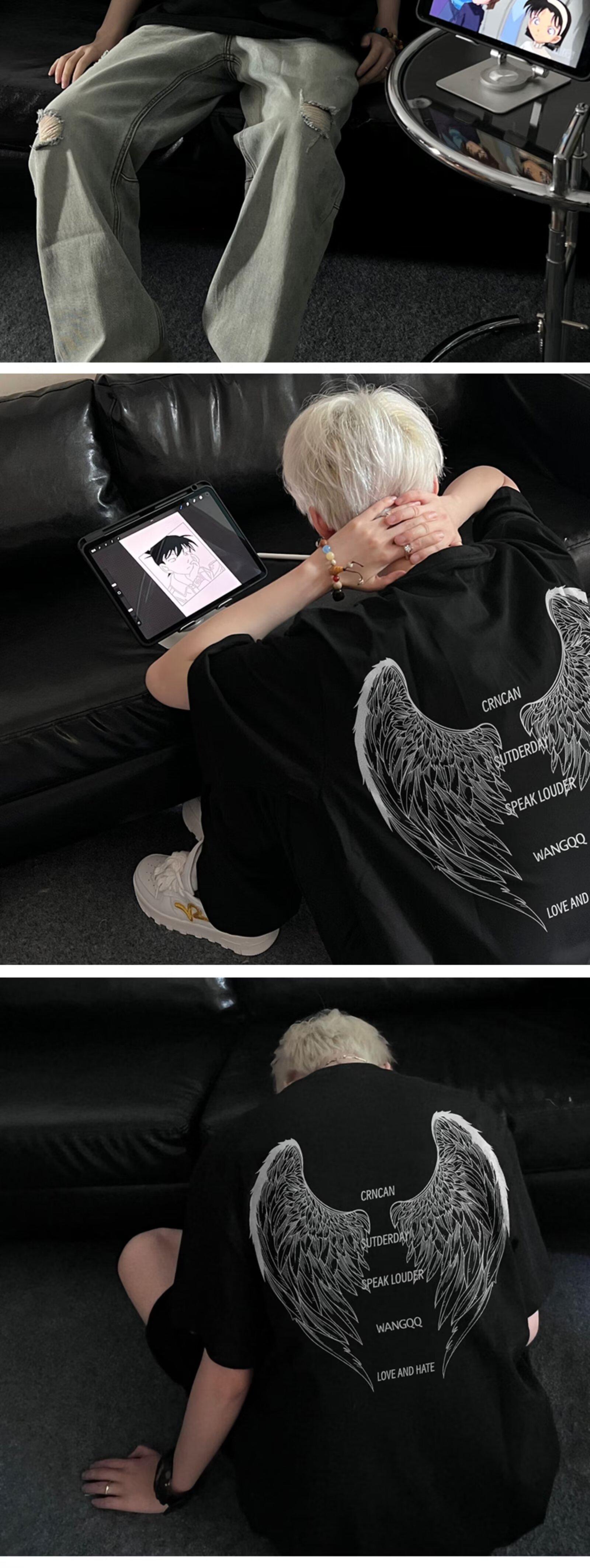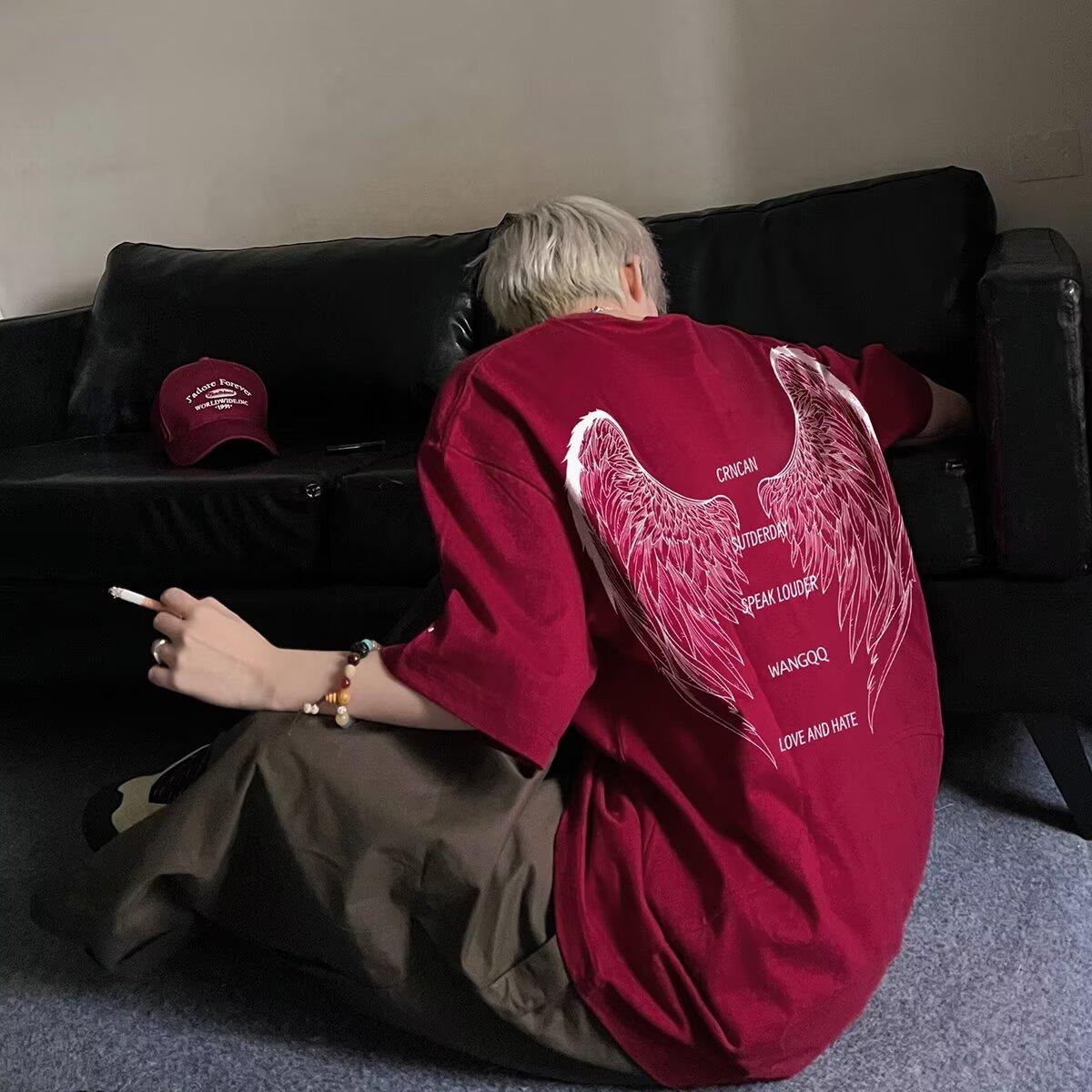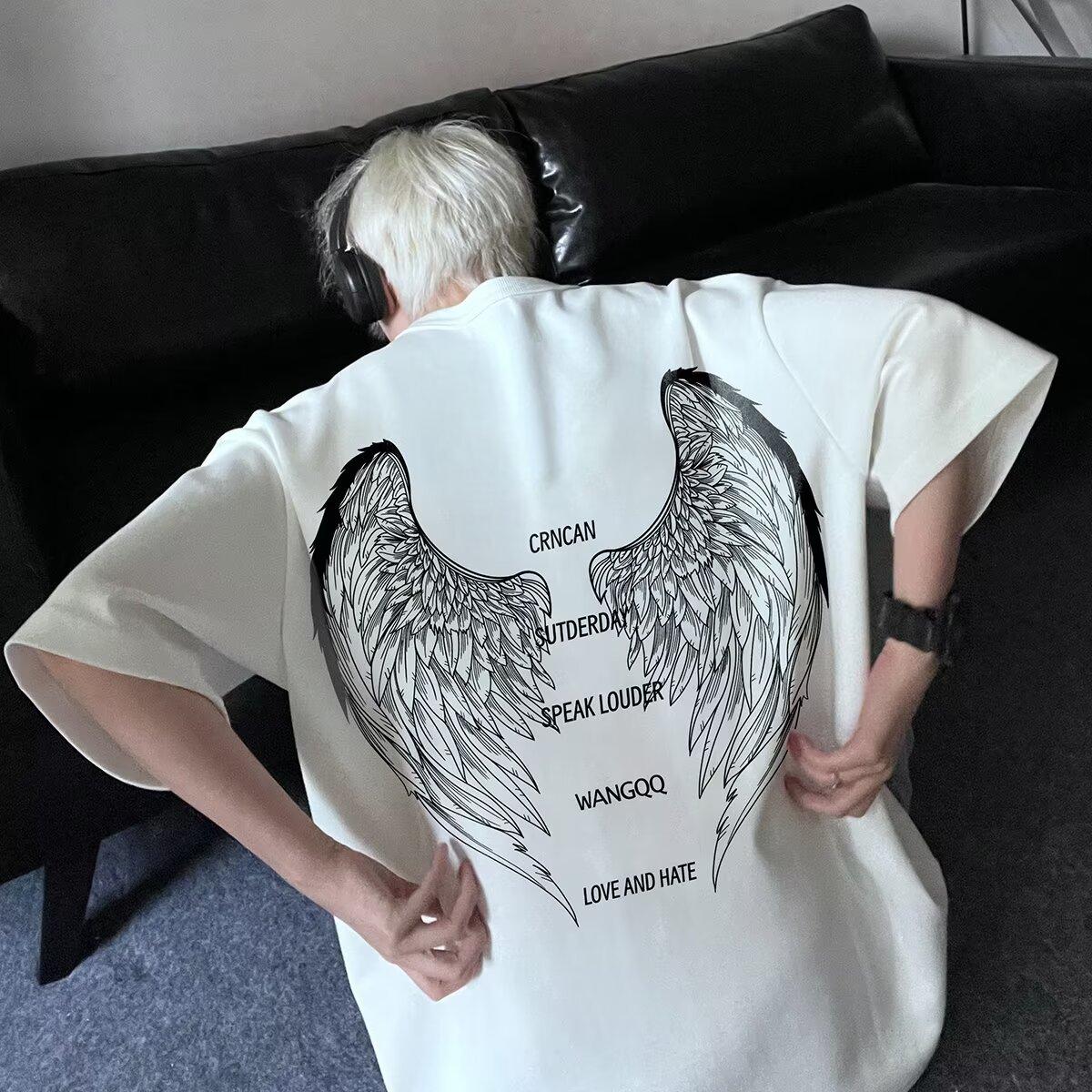 Nueva camiseta de manga corta para hombre, estilo coreano de verano, moderna, sencilla, de media manga, holgada, informal, estampada, de algodón puro, de marca de moda.