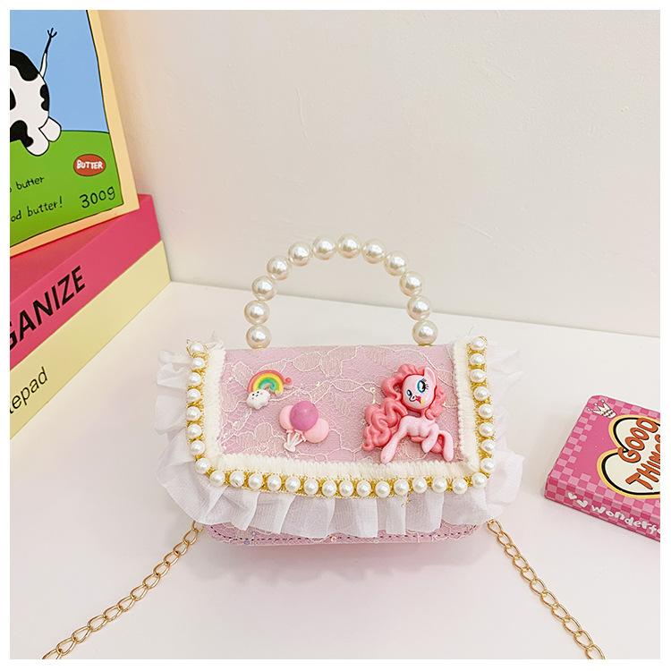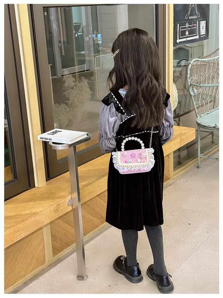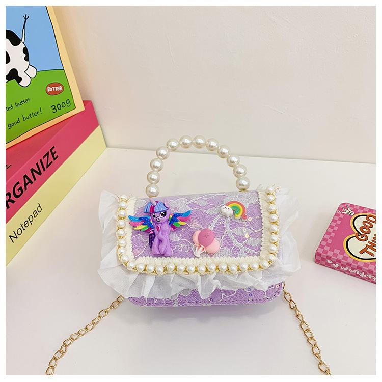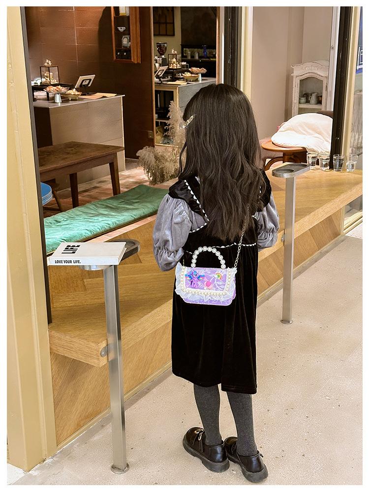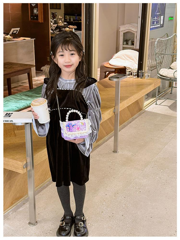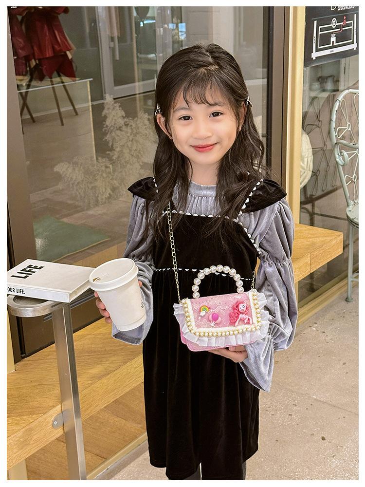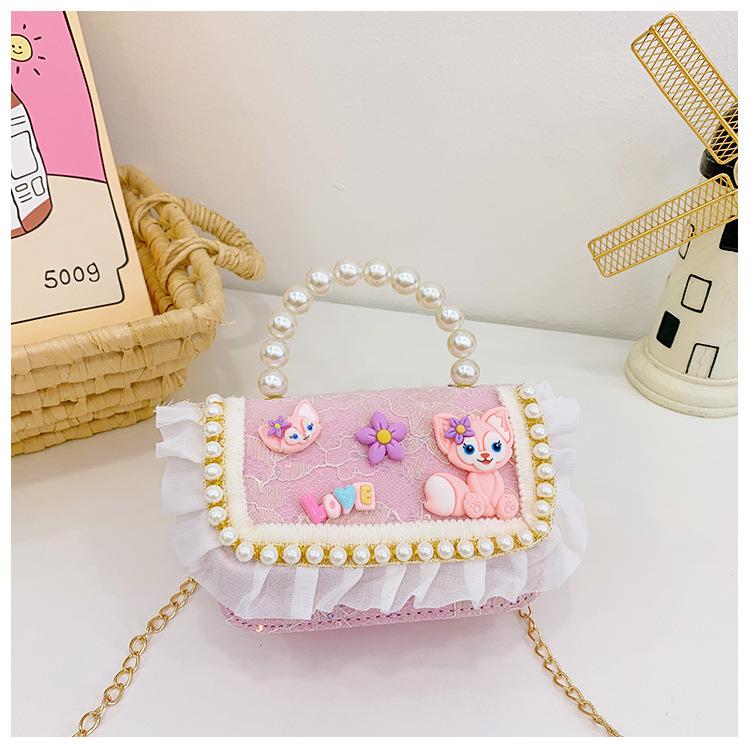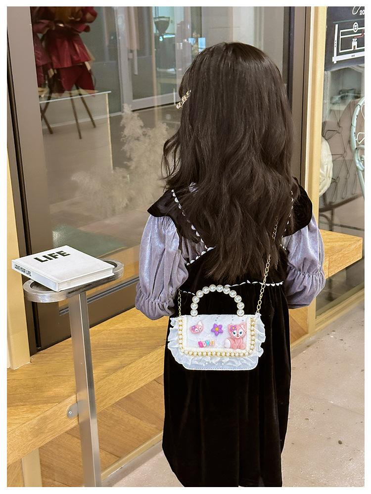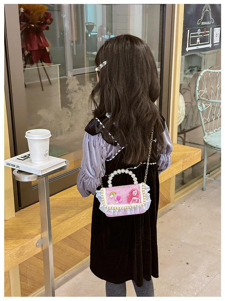 Nuevo bolso para niños, bolso cruzado de moda para bebés, bolso de princesa portátil con perlas para niñas, monedero estilo Chanel, venta al por mayor