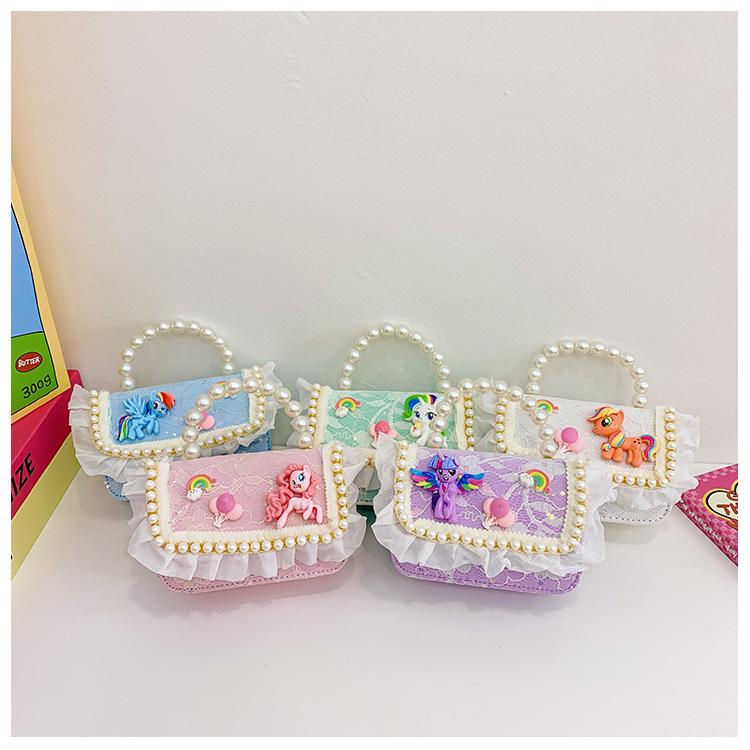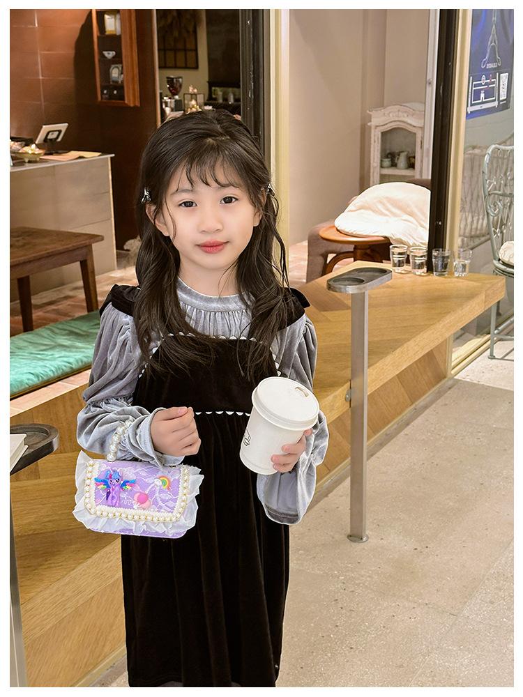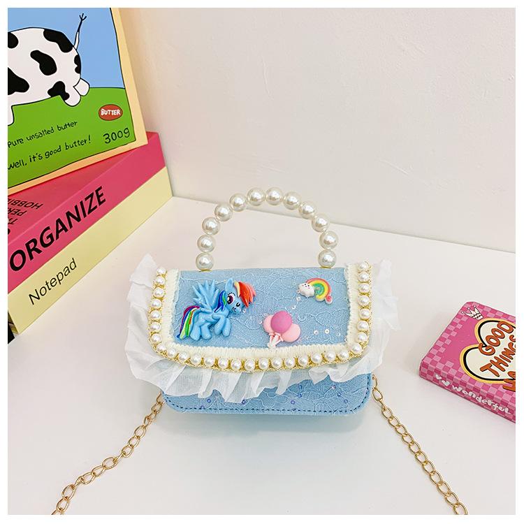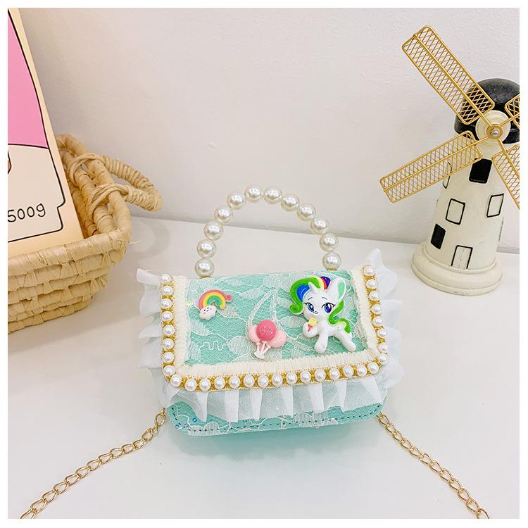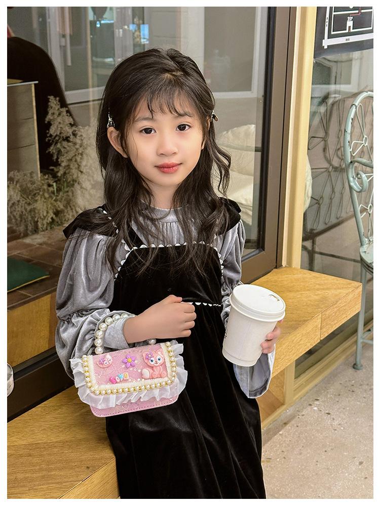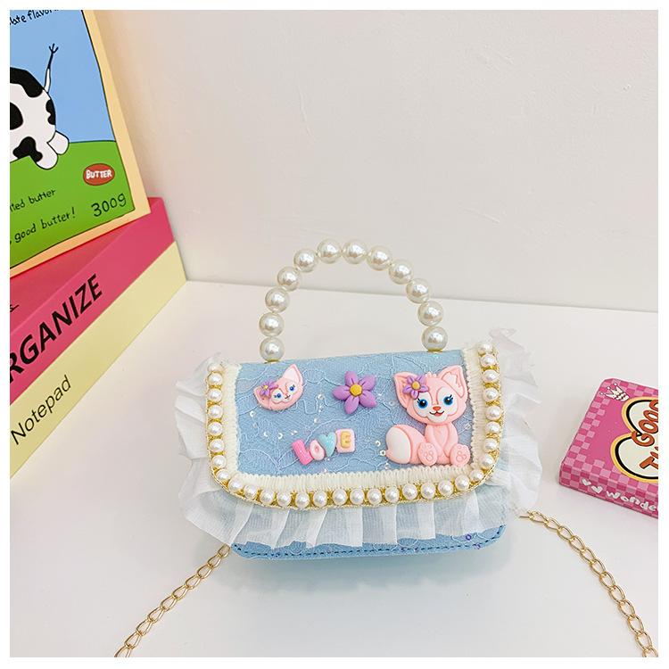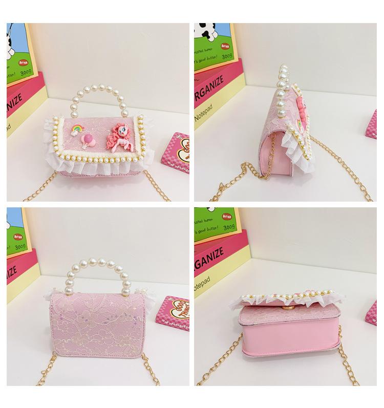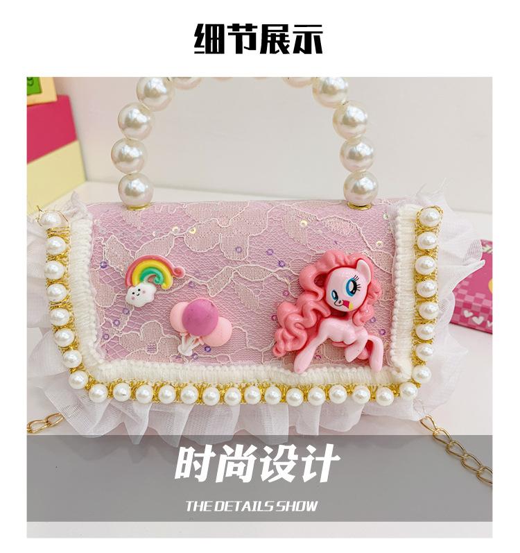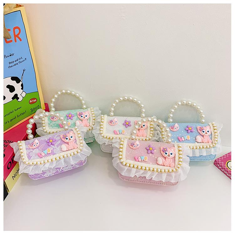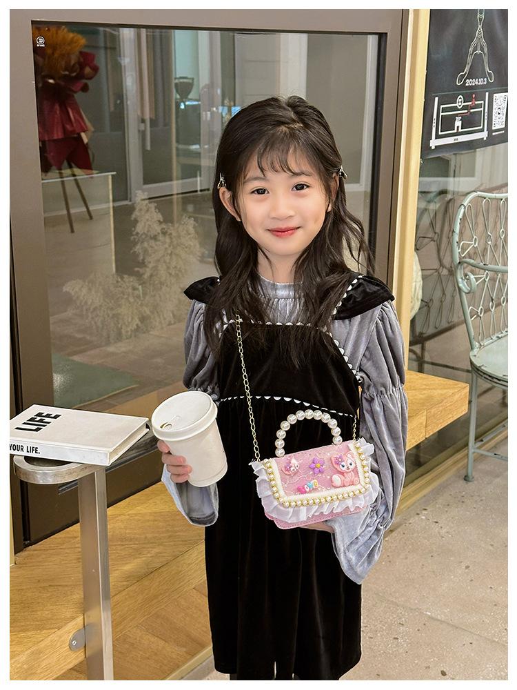 Nuevo bolso para niños, bolso cruzado de moda para bebés, bolso de princesa portátil con perlas para niñas, monedero estilo Chanel, venta al por mayor