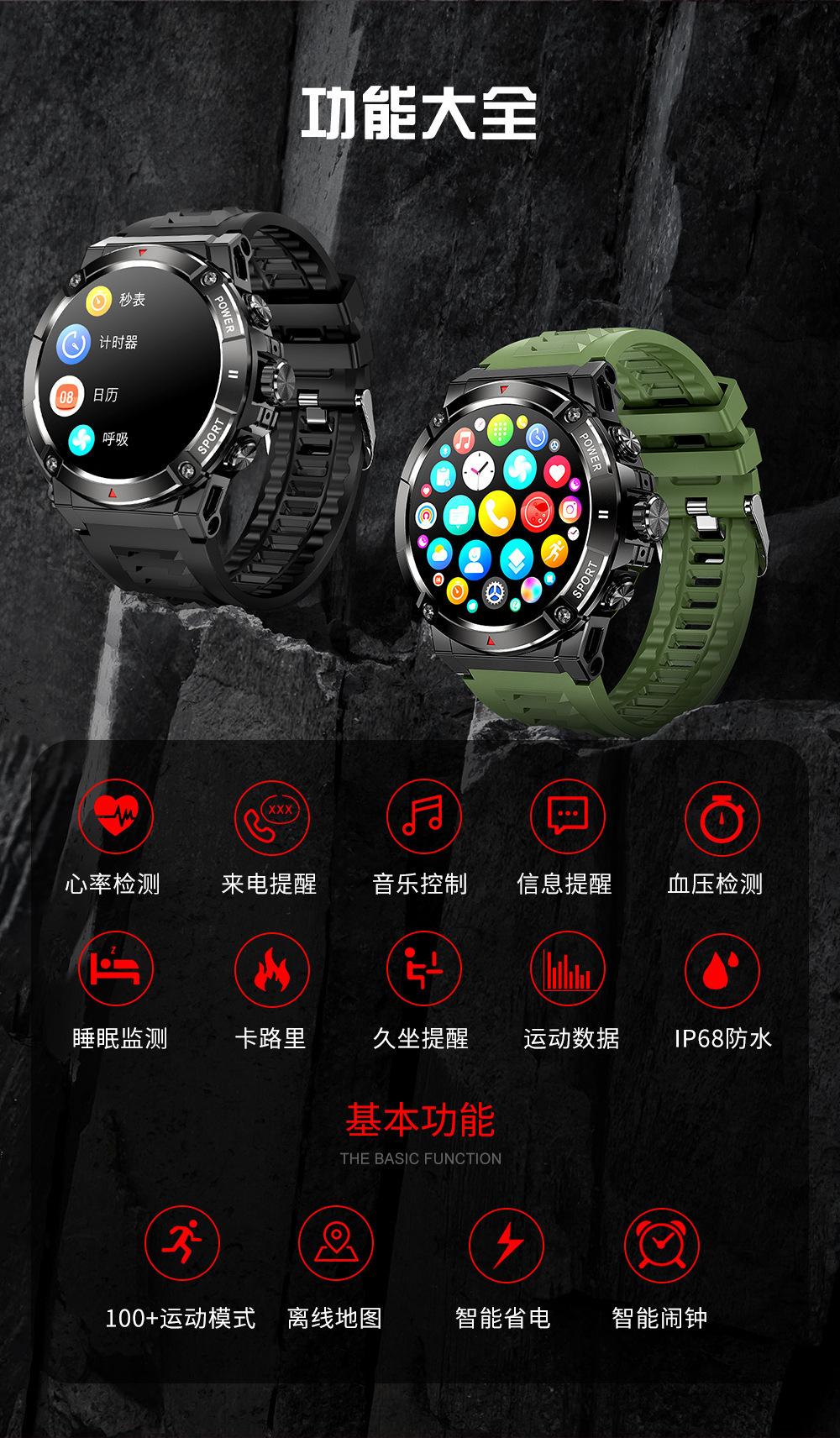 Waterproof, Take photos, Step counting, Heart rate monitoring, Blood pressure measurement, Social entertainmen...