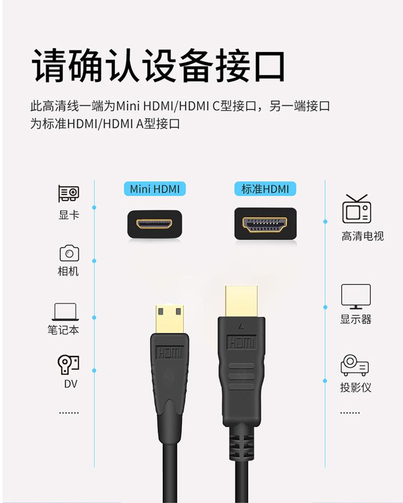 Cable mini HDMI a HDMI, mini cable de conversión de TV HD para conectar cámaras de tableta, tabletas pequeñas a grandes