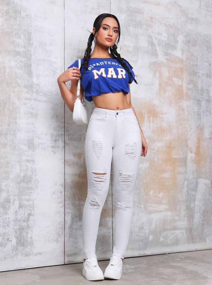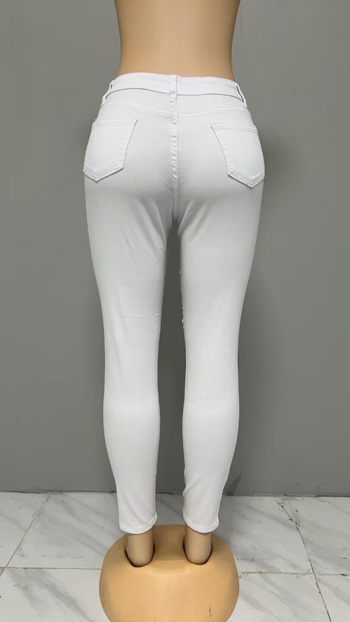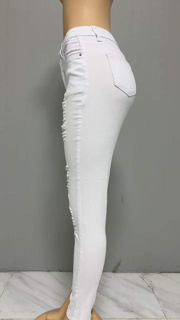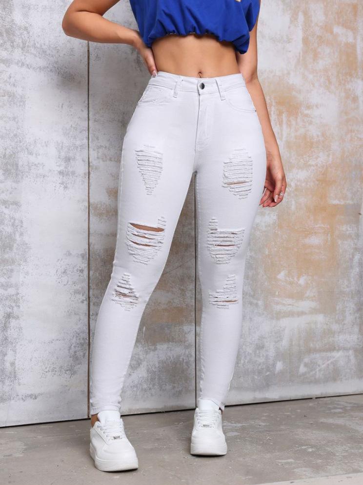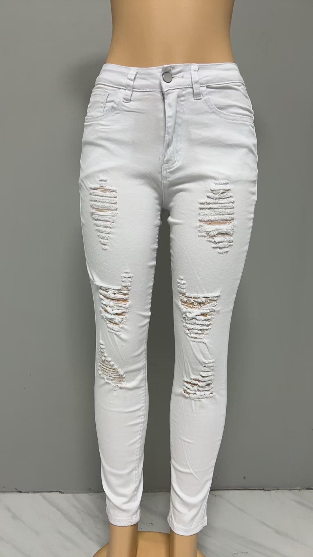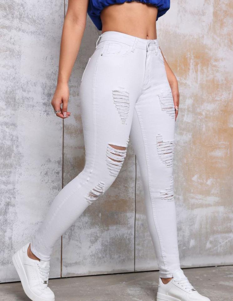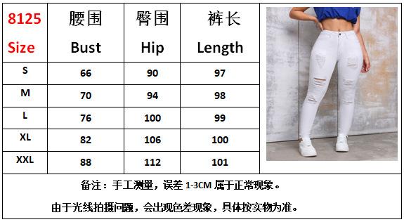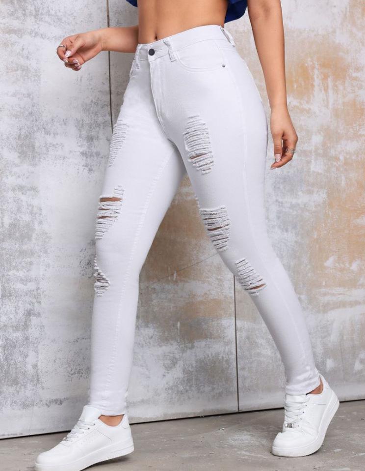 Primavera y verano Amazon Europa y Estados Unidos Transfronterizo Nuevos pantalones vaqueros elásticos con agujeros para mujer Pantalones largos ajustados con agujeros