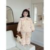 Pijamas de otoño e invierno 2024 para niños, ropa de casa para niñas con dibujos animados de franela acolchada con solapa, cárdigan de lana coral