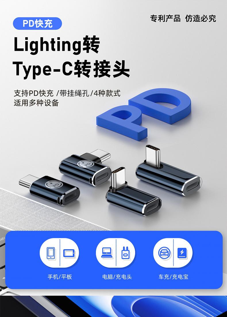 Adecuado para Adaptador Apple 15 lighting Hembra a typec Macho Codo Teléfono Móvil PD20W Convertidor de Carga Rápida