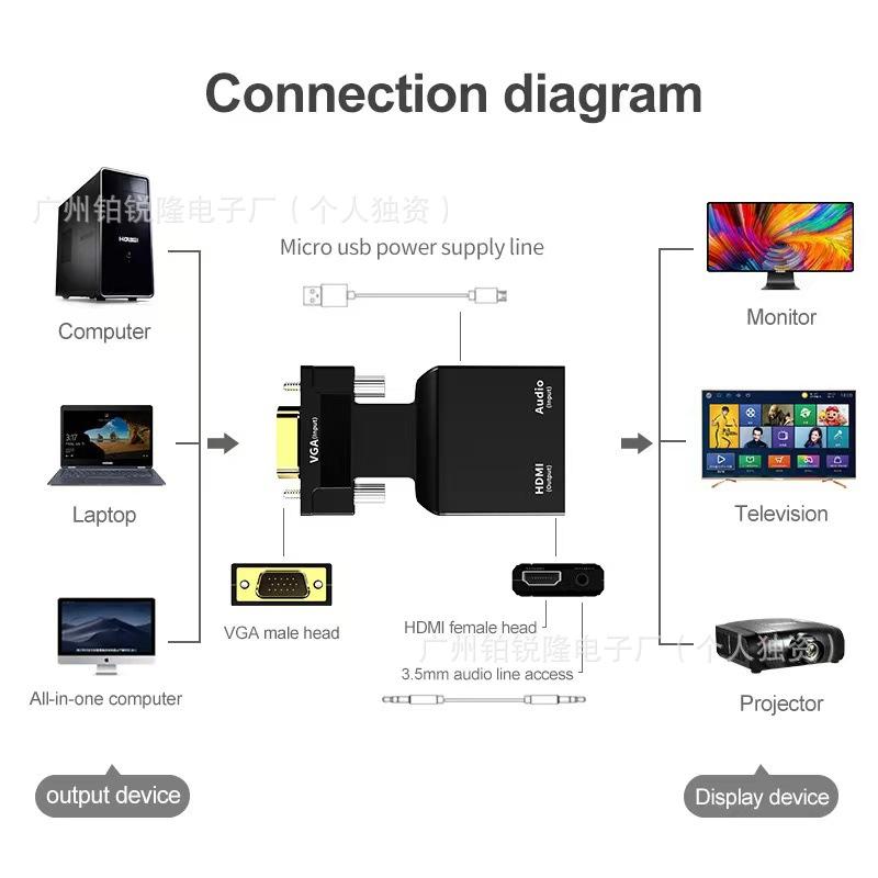 Adaptador VGA a HDTV 1080P Adaptador de Alta Definición Compatible con Múltiples Sistemas para Laptops