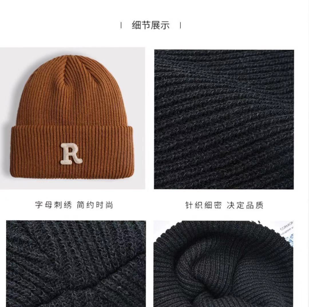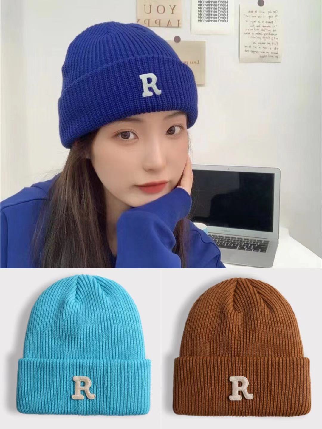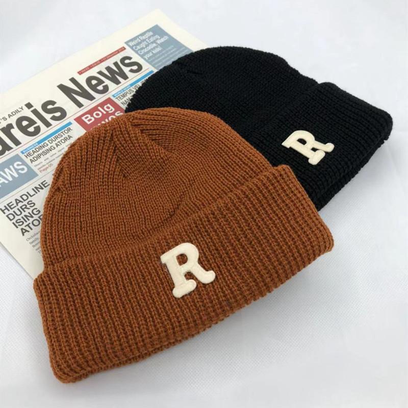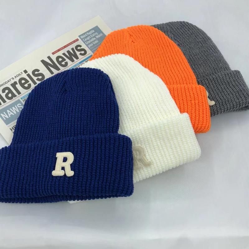 Sombrero de Lana Sombrero Tejido para Hombre Sombrero Casual Coreano con Letra R Sombrero de Estudiante de Lana Sombrero Pulóver para Hombre
