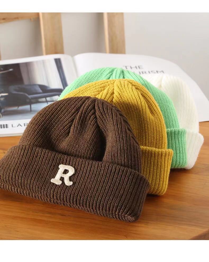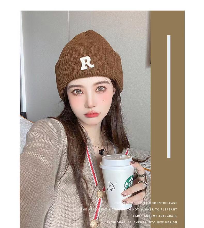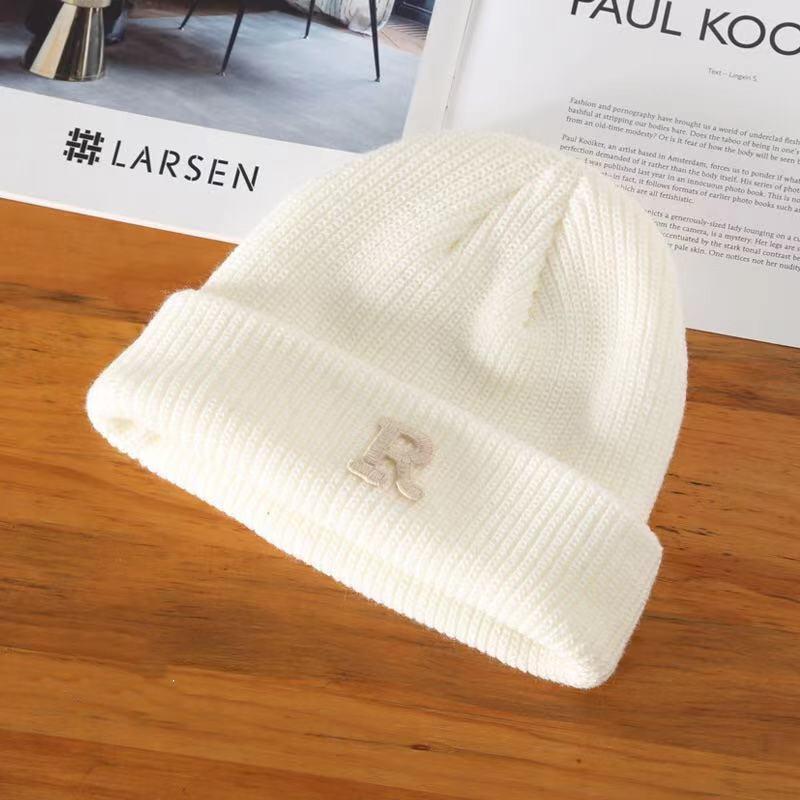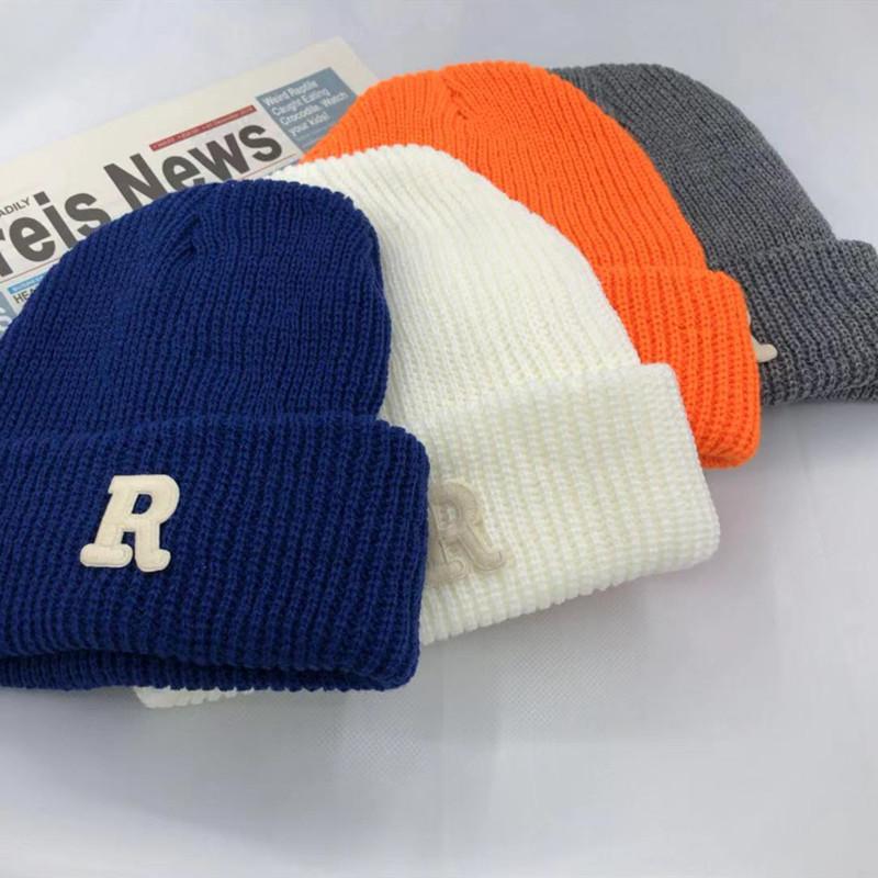 Sombrero de Lana Sombrero Tejido para Hombre Sombrero Casual Coreano con Letra R Sombrero de Estudiante de Lana Sombrero Pulóver para Hombre