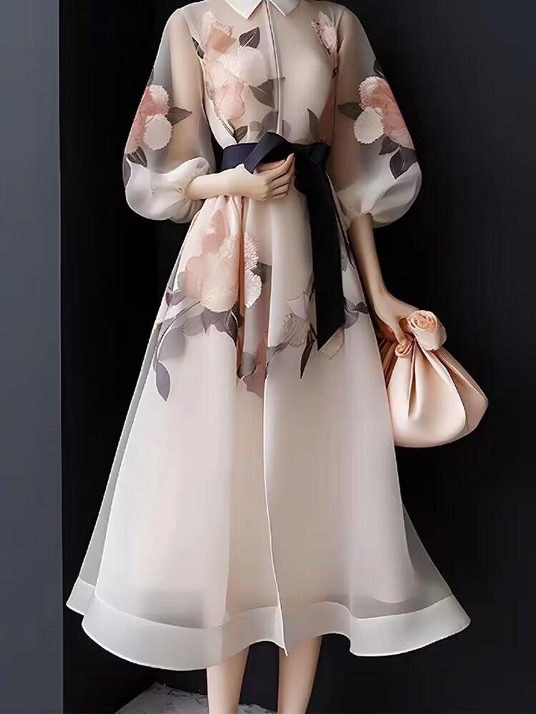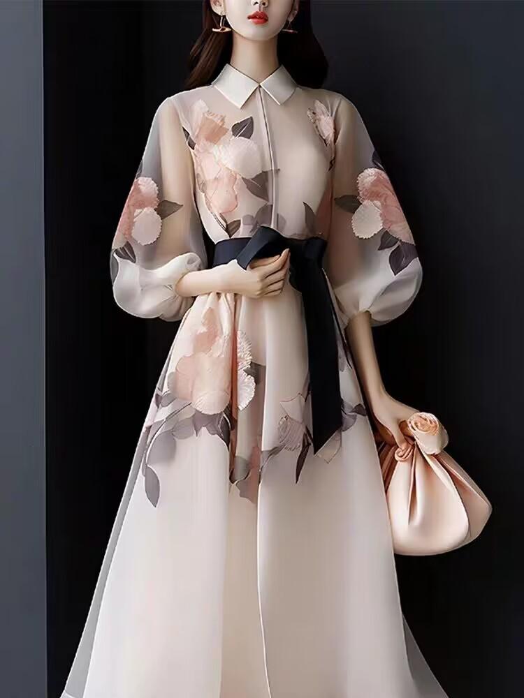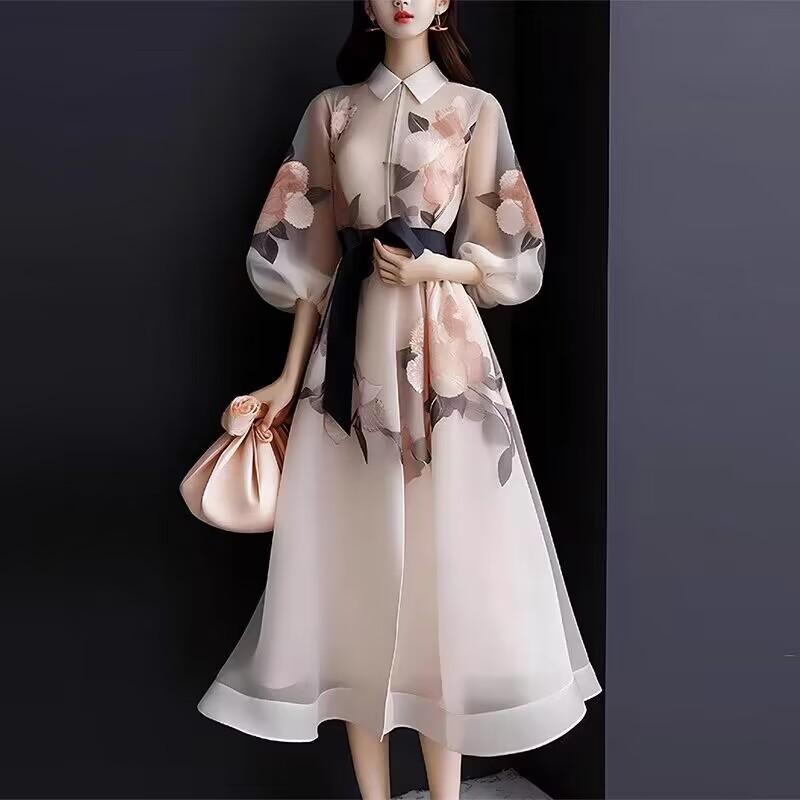 Retiro de Mostrador Primavera y Otoño Nuevo Estilo Chino Vestido Estilo Nacional para Mujer Temperamento Falda Lujosa de Alta Gama