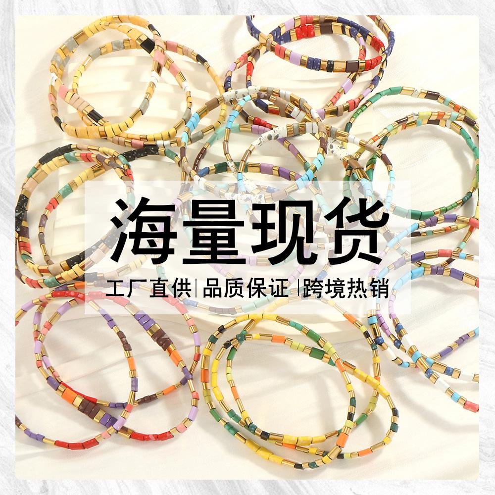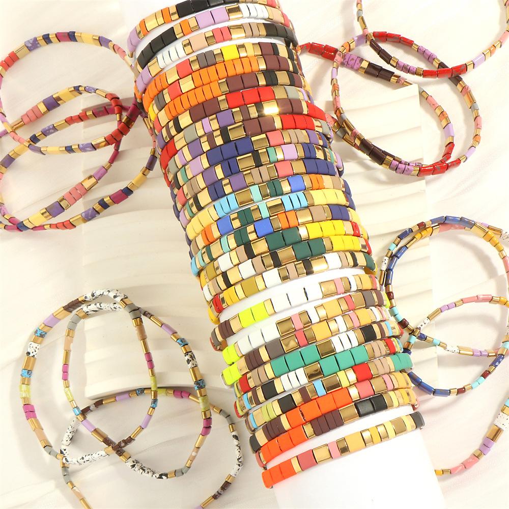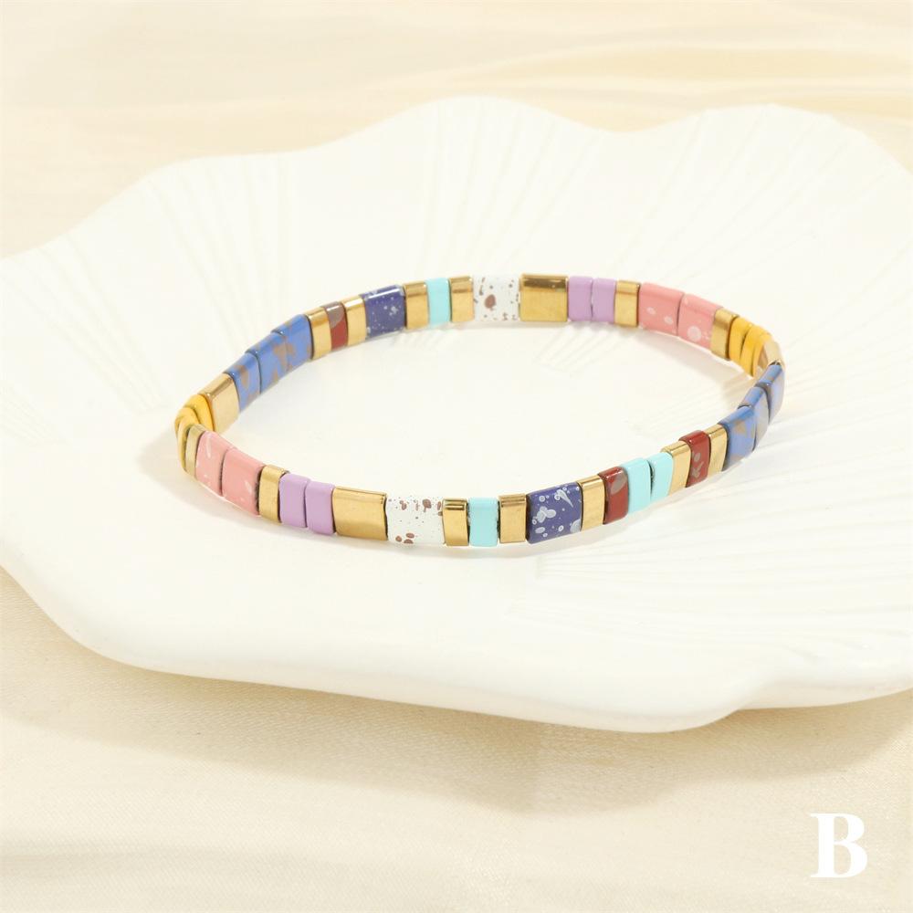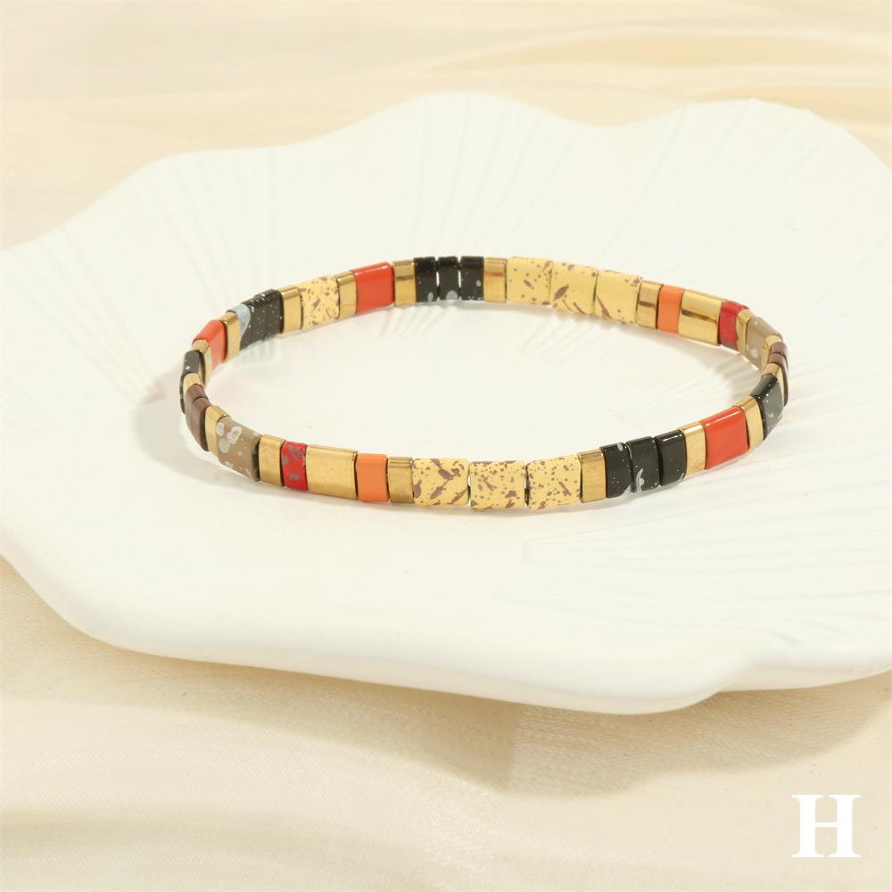 Pulsera de Cuentas Tila Retro Moderna Personalizada Simple Bohemia Tejida a Mano Elástica para Mujer