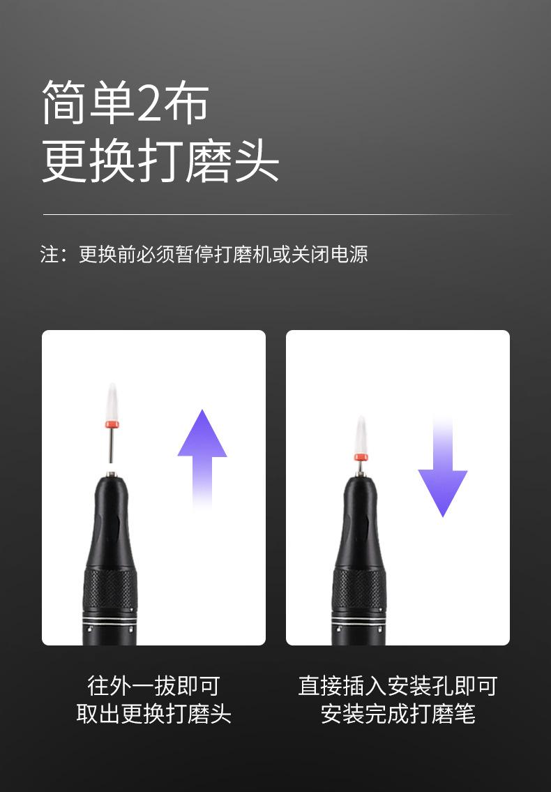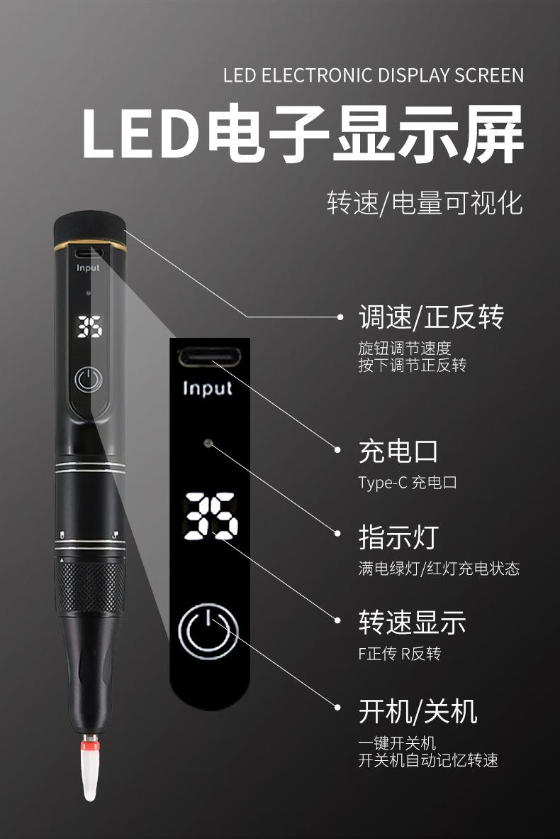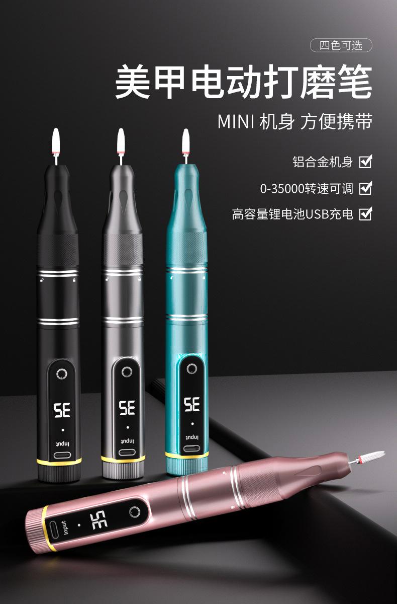 Amoladora Eléctrica Portátil Recargable por USB para Manicura, Velocidad Ajustable, Eliminación de Uñas, Lápiz de Pulido Inalámbrico para Eliminar Piel Muerta y Manicura