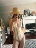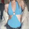 Traje de Baño Coreano Estilo 2024 Nuevo Color Sólido Espalda Descubierta Bikini Sexy con Tiras Huecas Bikini de Vacaciones para Mujer