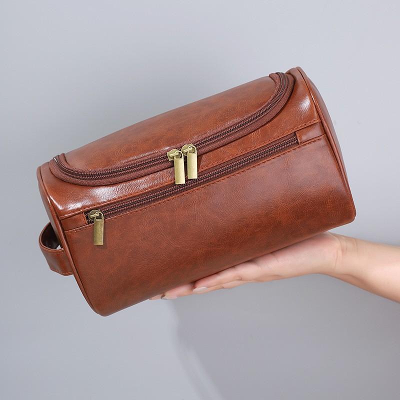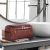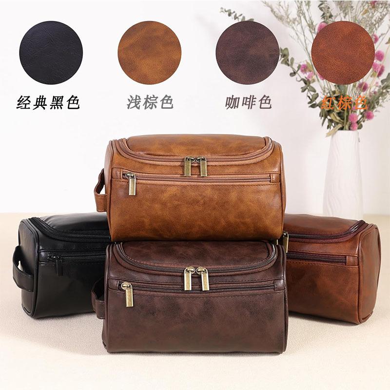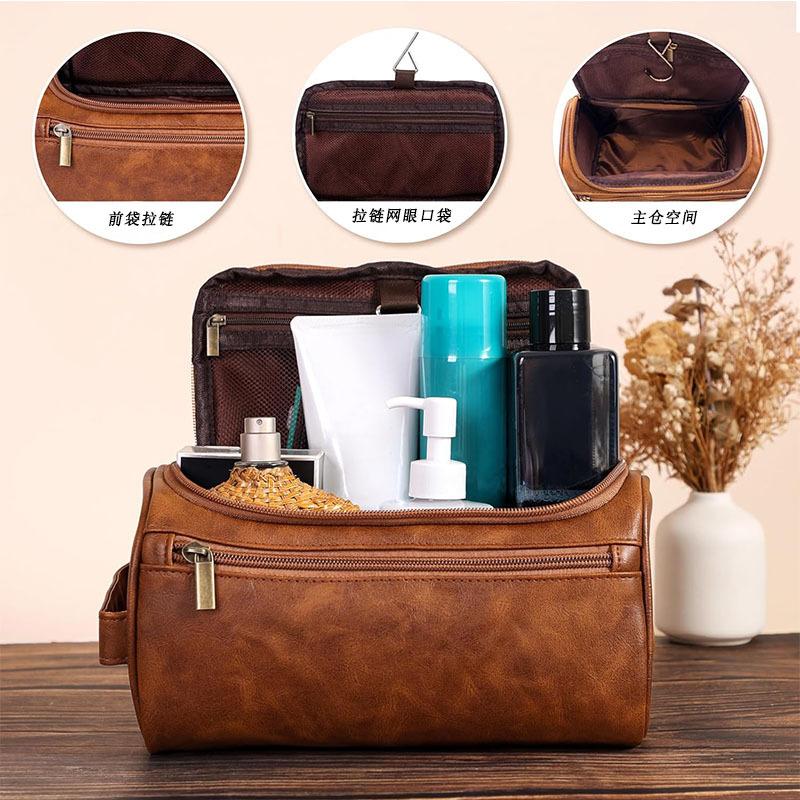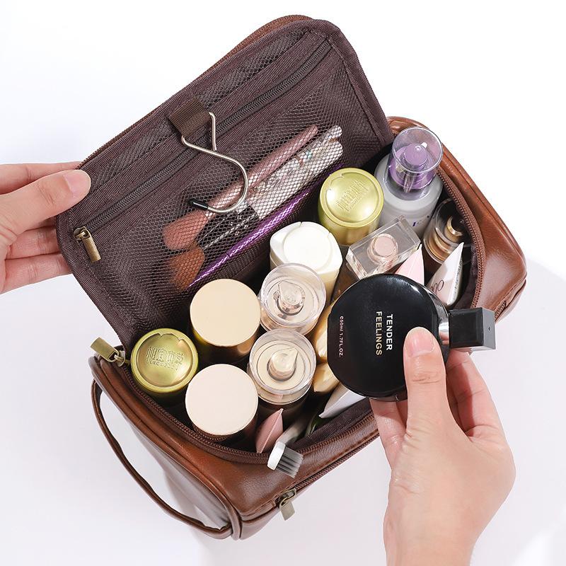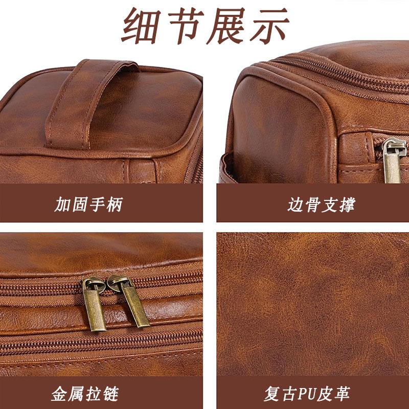 Bolsa de cosméticos retro portátil con borde cruzado, gran capacidad, impermeable, de cuero sintético, para artículos de tocador, bolsa de viaje multifuncional