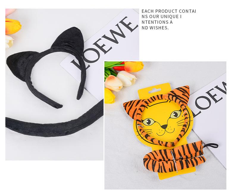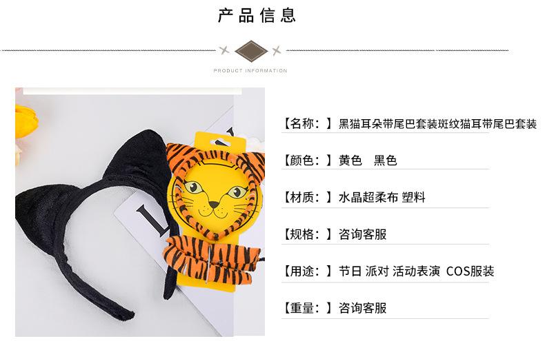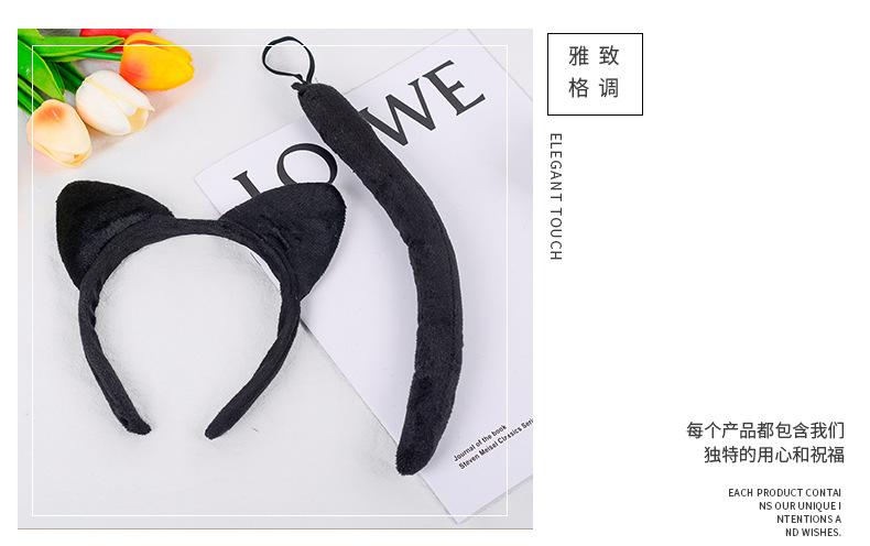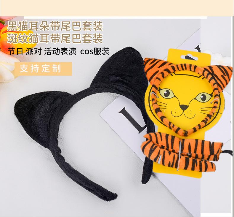 Lindo Dibujo Animado Halloween Actuación Diadema Disfraz Patrón Gato Orejas de Gato Negro con Cola Set Venta al por Mayor Se Puede Personalizar